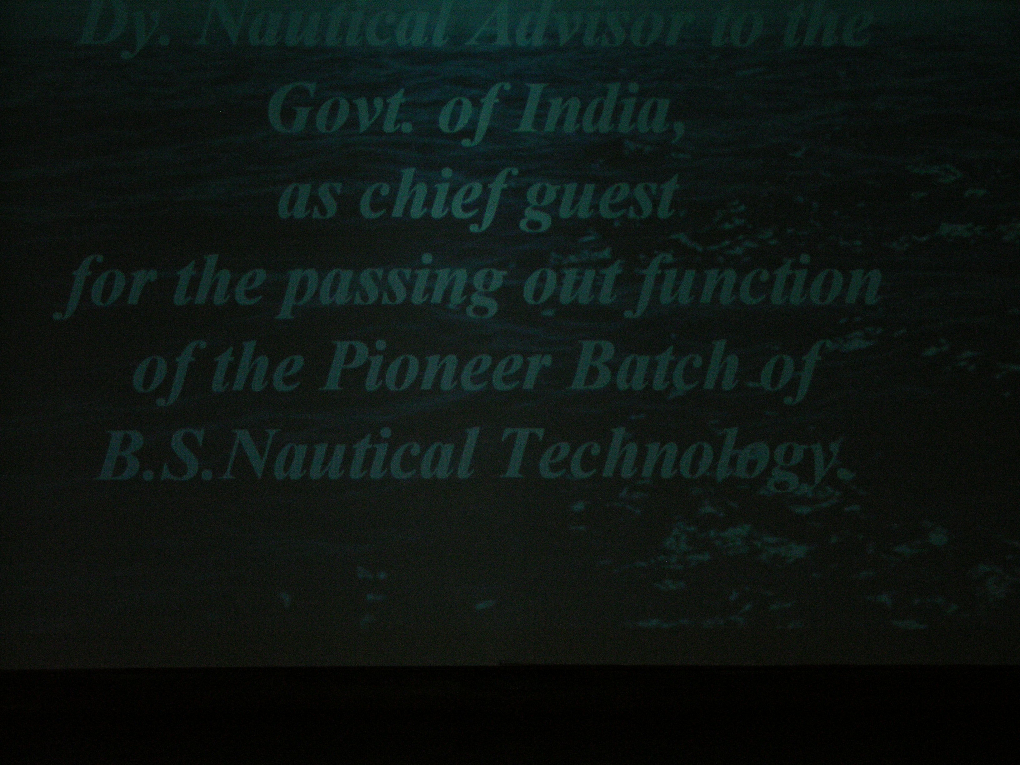 Graduation Ceremony of Pioneer Batch BSNT 2002, Guest is Deputy Nautical Advisor Govt. of India