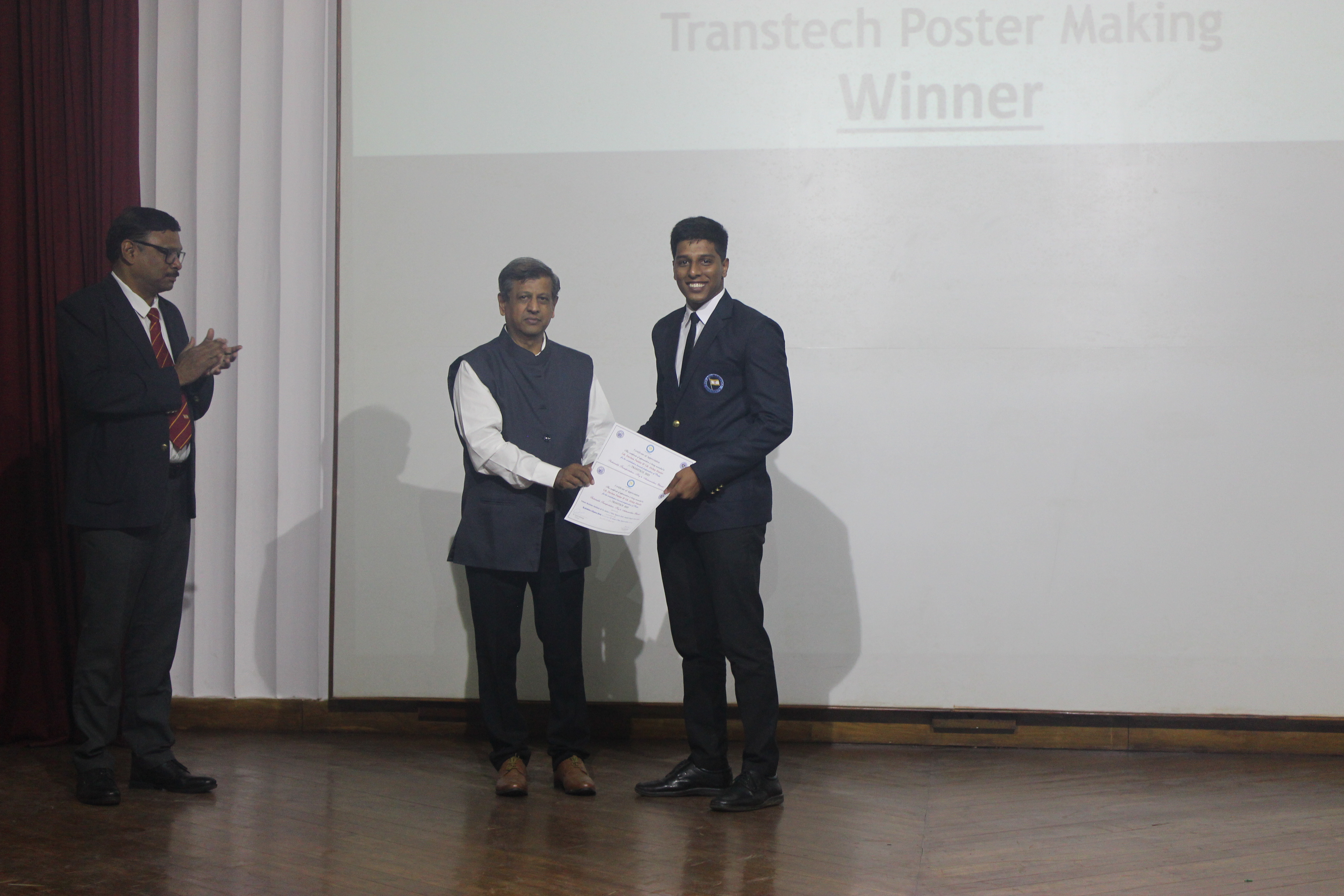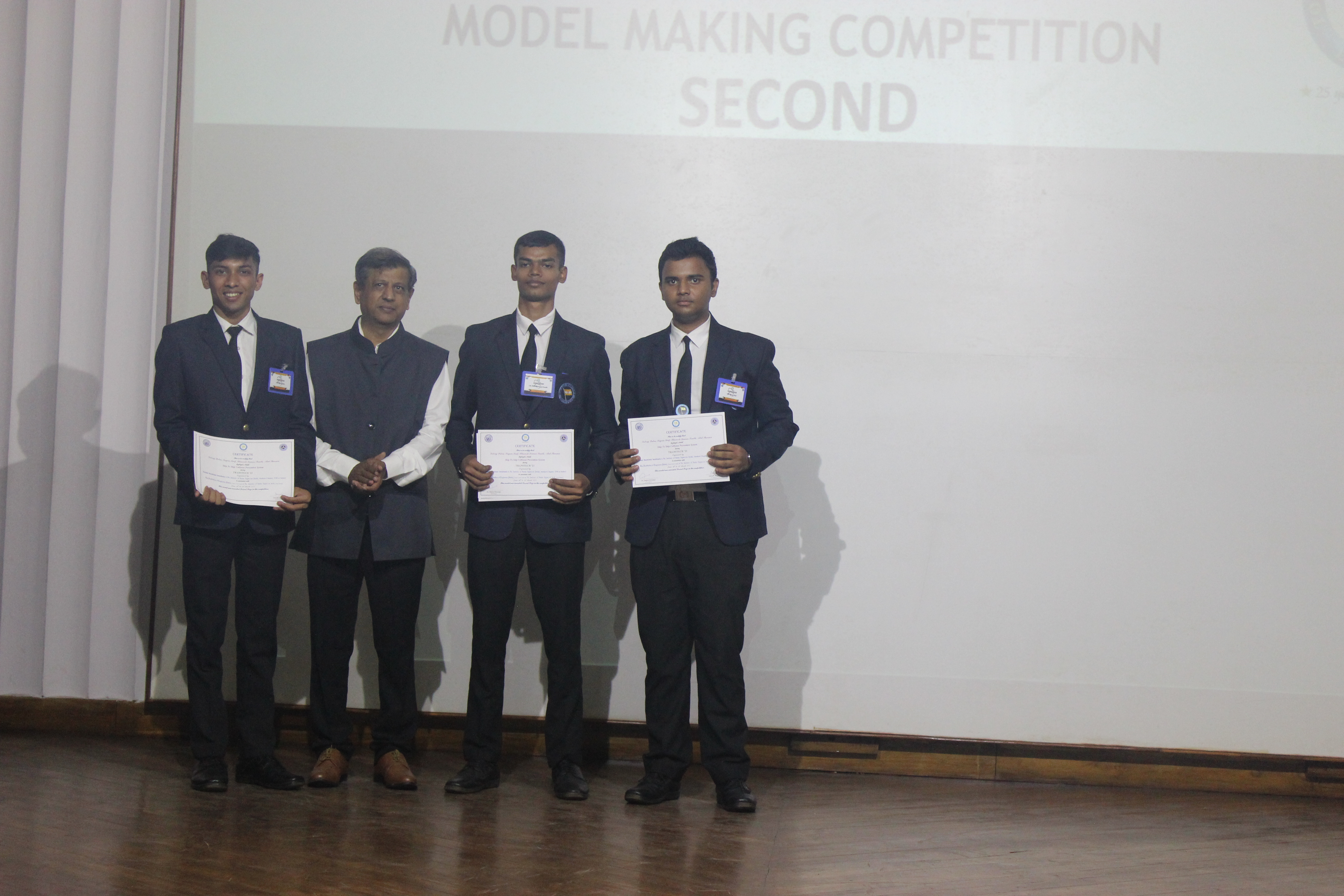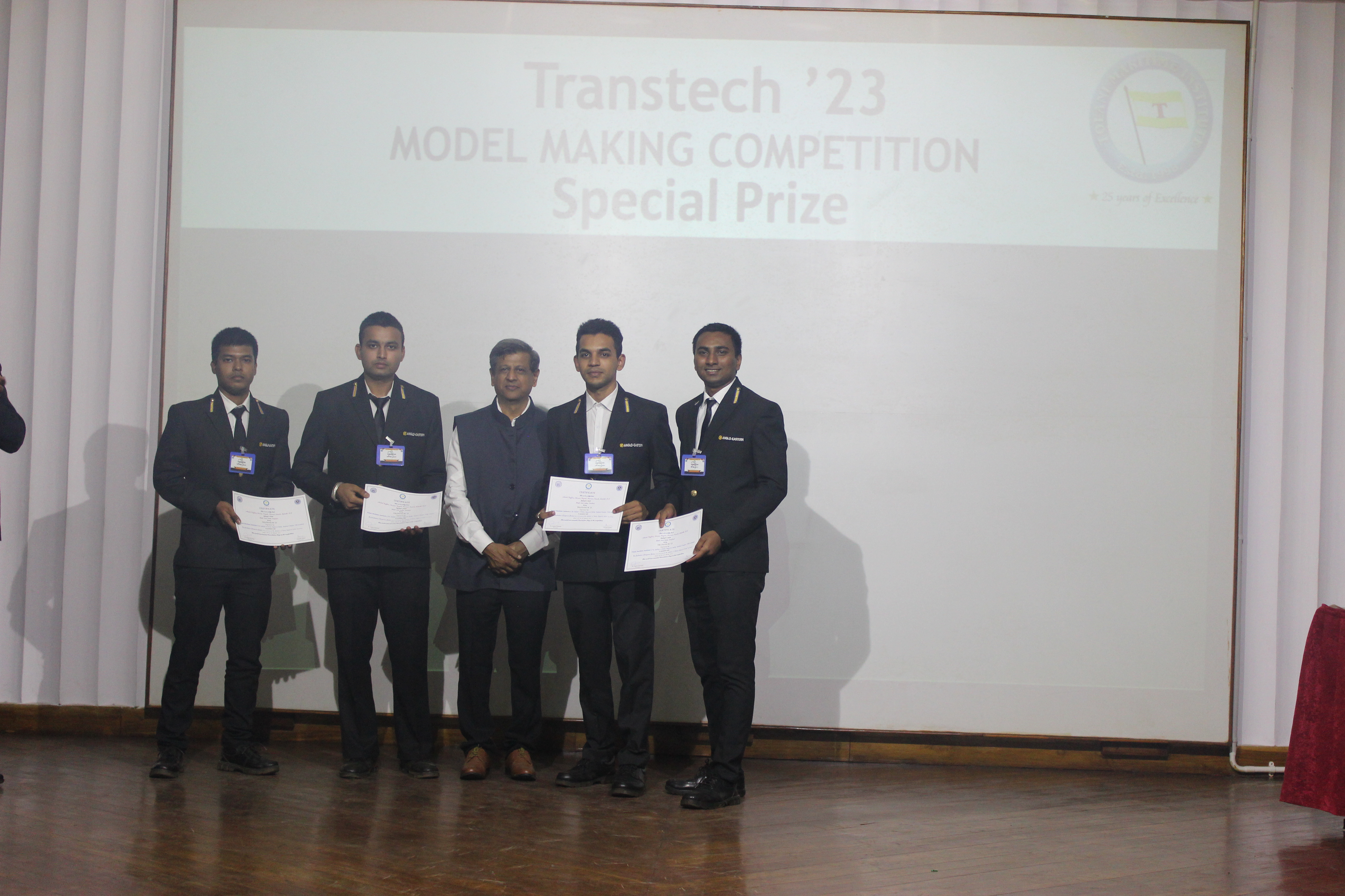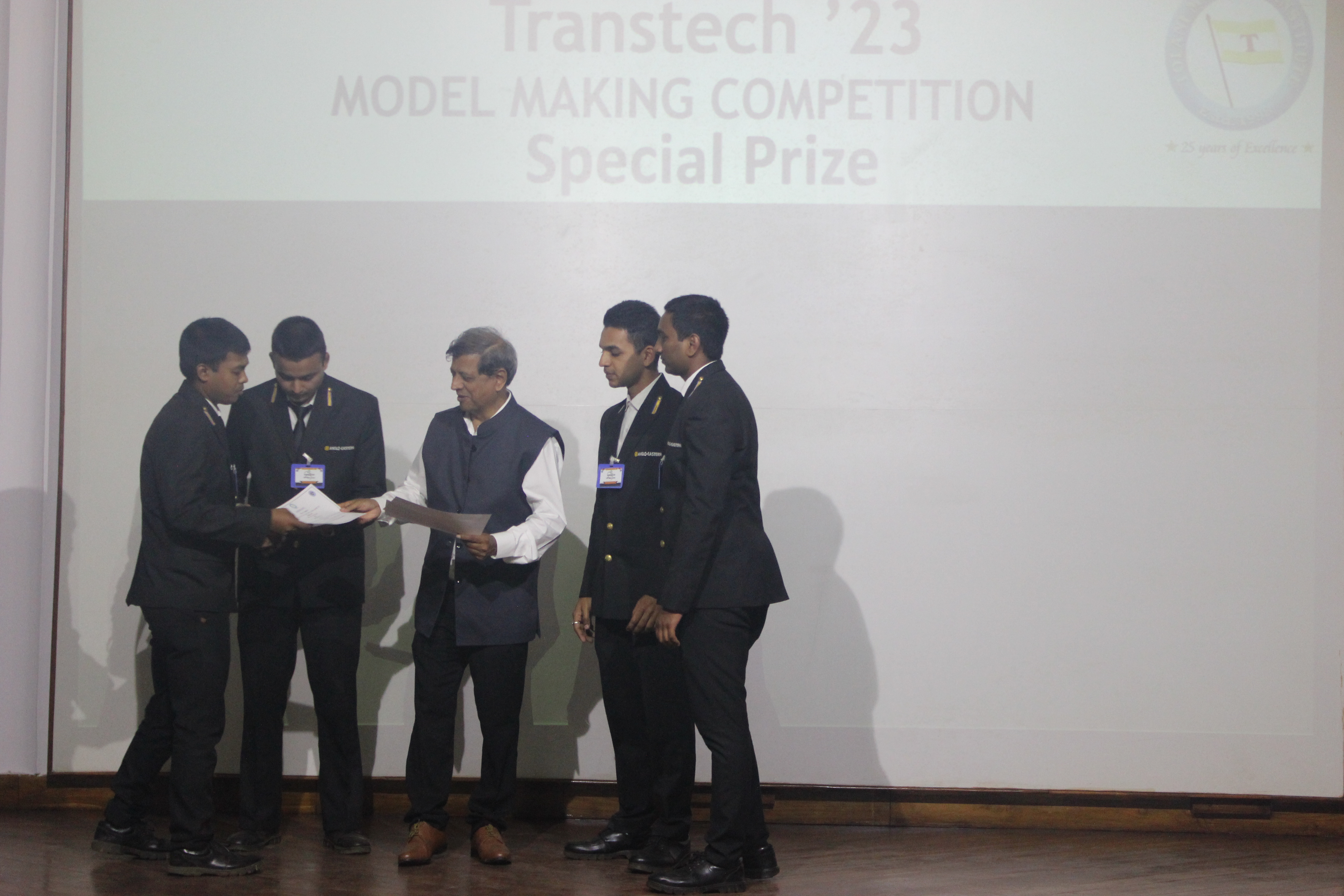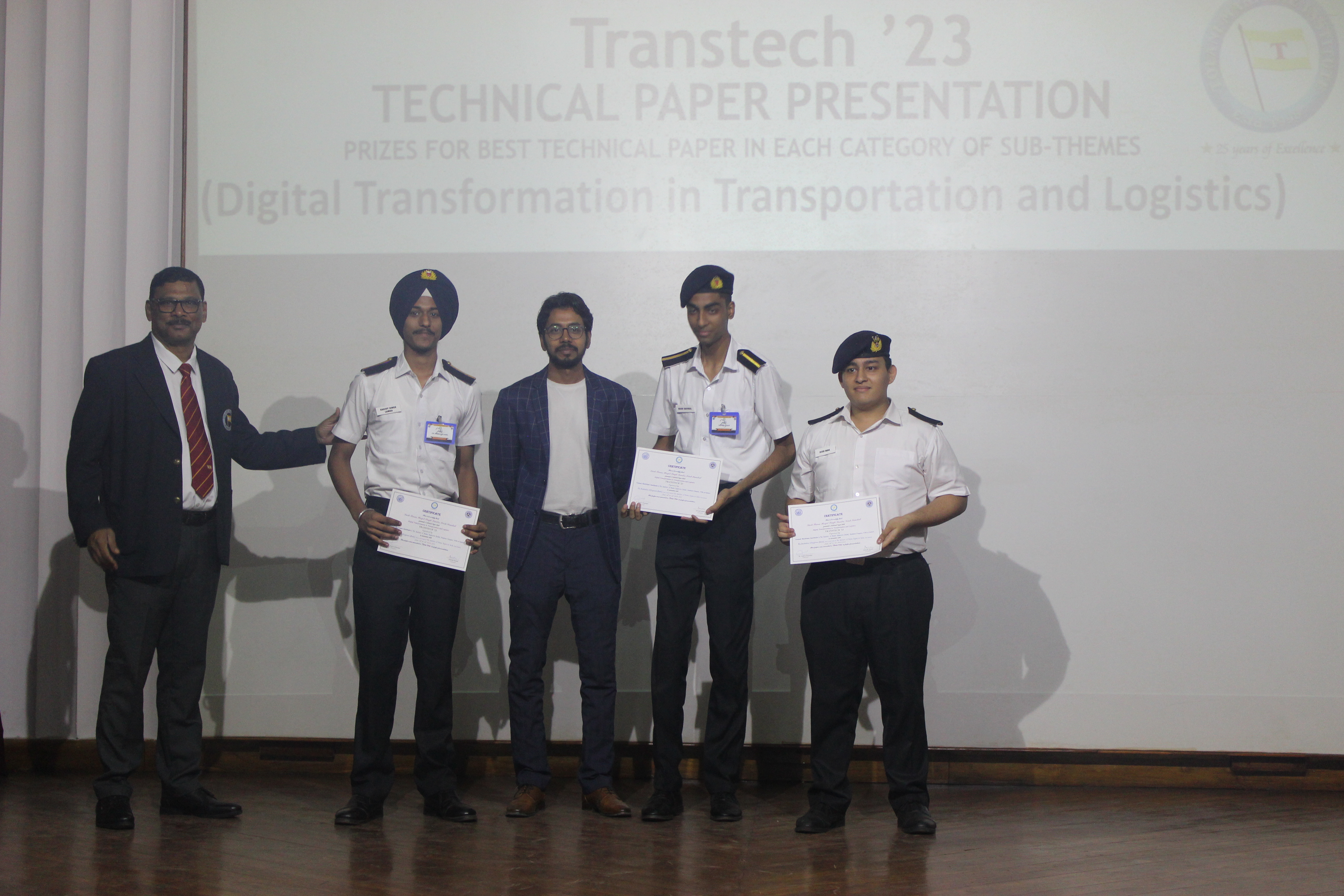 The Transtech Theme Poster winners were Cdt. Darshan Patidar and Cdt. Akshay Havaler. The wonders of their graphics and photography skills were being aired on all the three days as Cdt. Harsh Sharma and Cdt. Samarth Jogi won the Transtech Video Making Competition. The winners of the intelligence-testing Marine Quiz were Cdts. Gautam Saxena and Akshay Havaler from Tolani Maritime Institute, followed by Cdts. Abdul Gaffar and Don Baby from Anglo Eastern Maritime Academy in the second place and Cdts. Kumar Srivathsan and Dhanraj Deshpande from Hindustan Institute of Maritime Training in the third. A total of 21 entries were registered for the model making competition. The winner of Model Making Competition was Cdt. Bhavesh Kumar Sendh from Tolani Maritime Institute with his model on Cargo Hold Cleaning Robot. This was followed by models by other teams of TMI and Anglo Eastern Maritime Academy. Out of the 22 potential entries, the winner of the Poster Making Competition was Cdt. Devendraraj Chavan from IMU Vishakhapatnam for his poster on, "A Socio-Economic Solution for Inland Water Transportation".