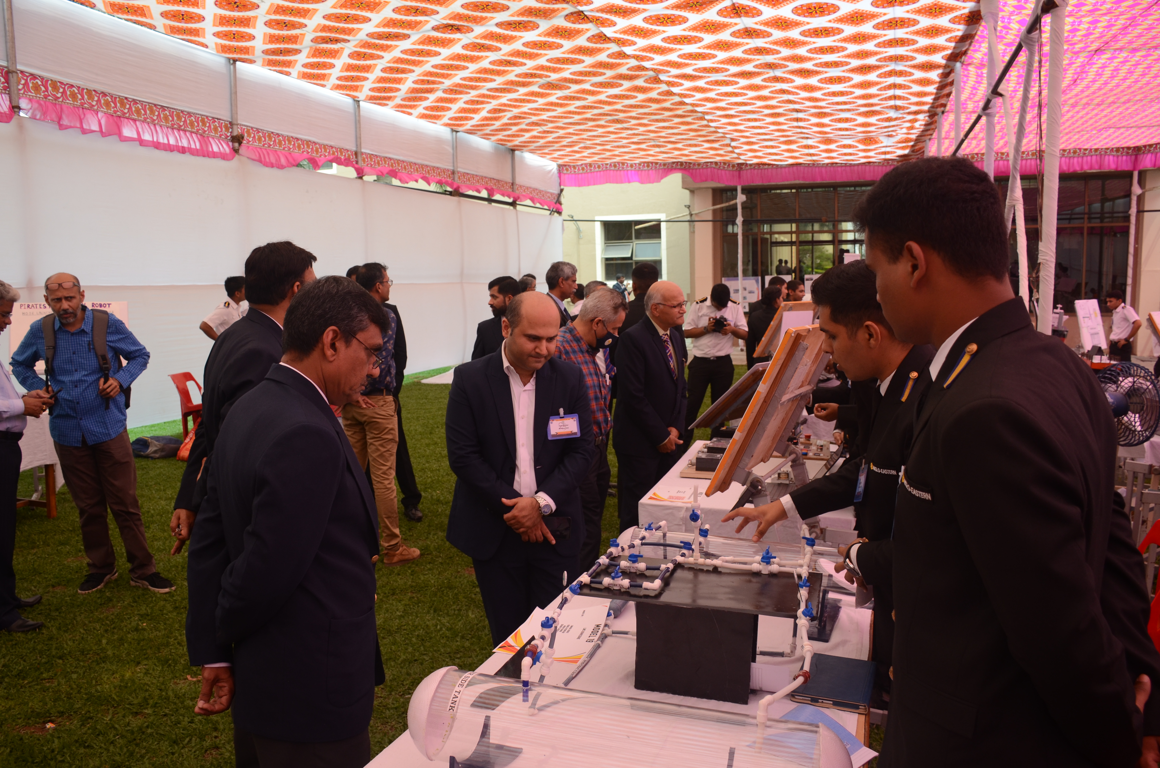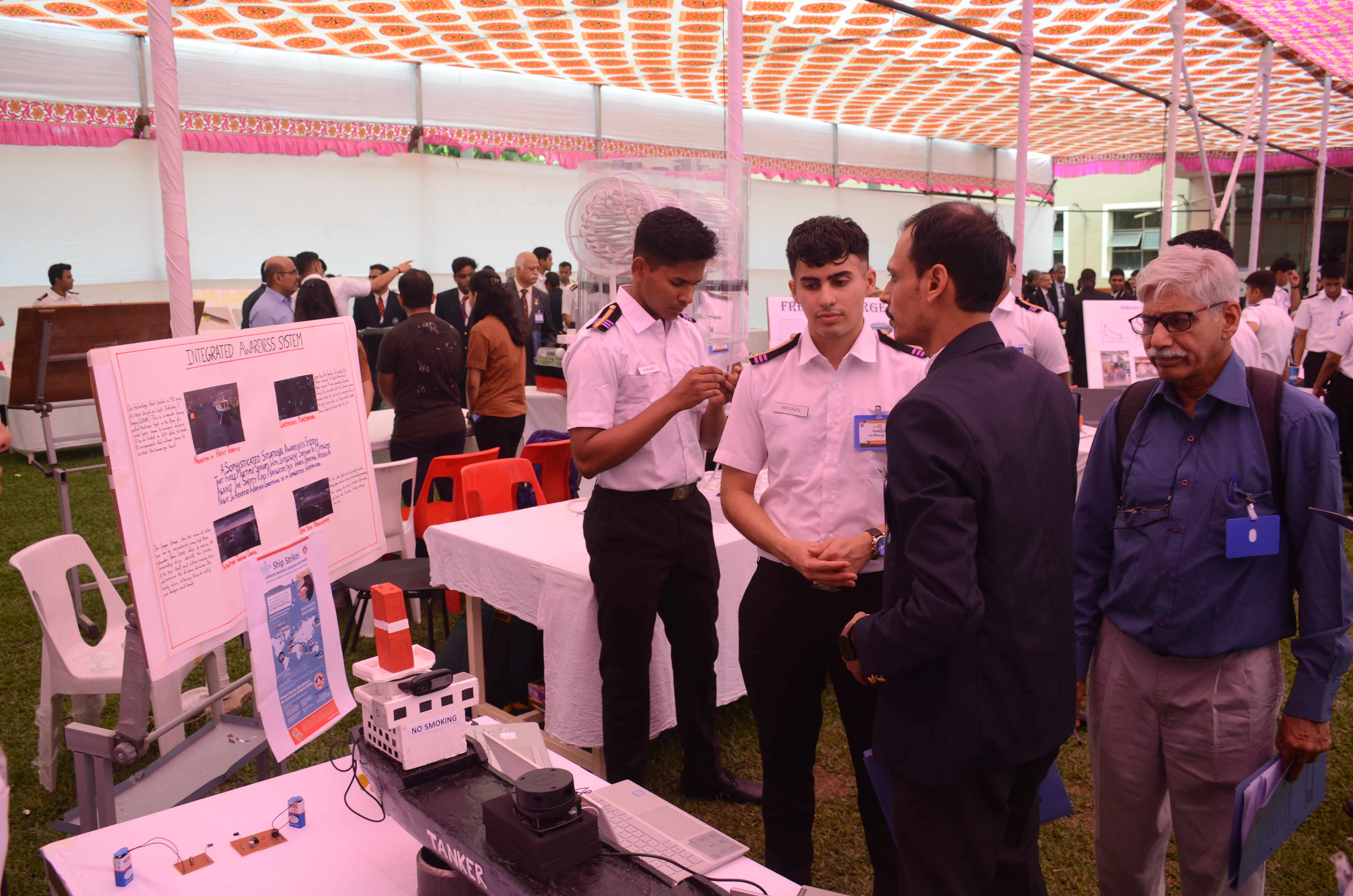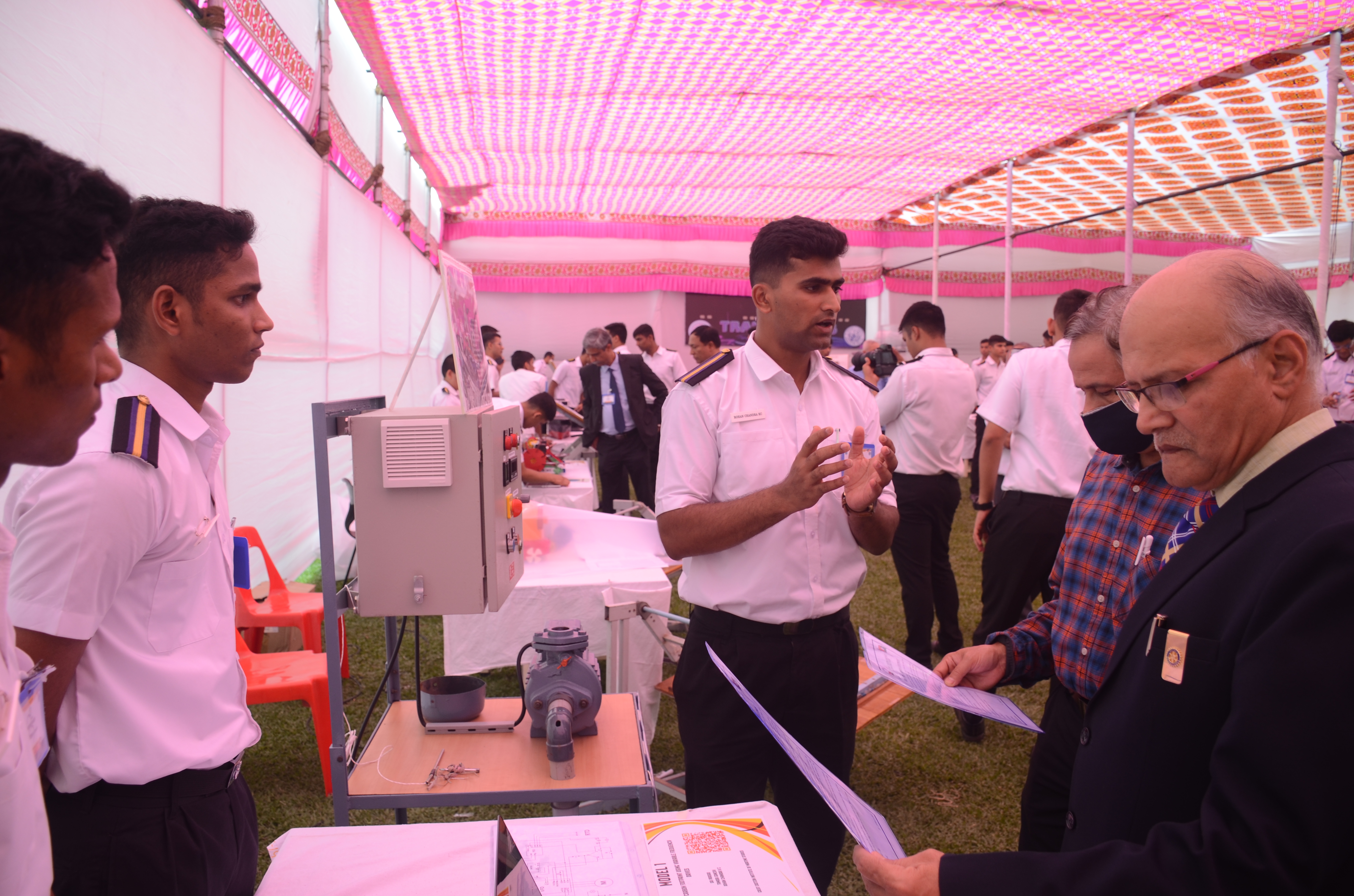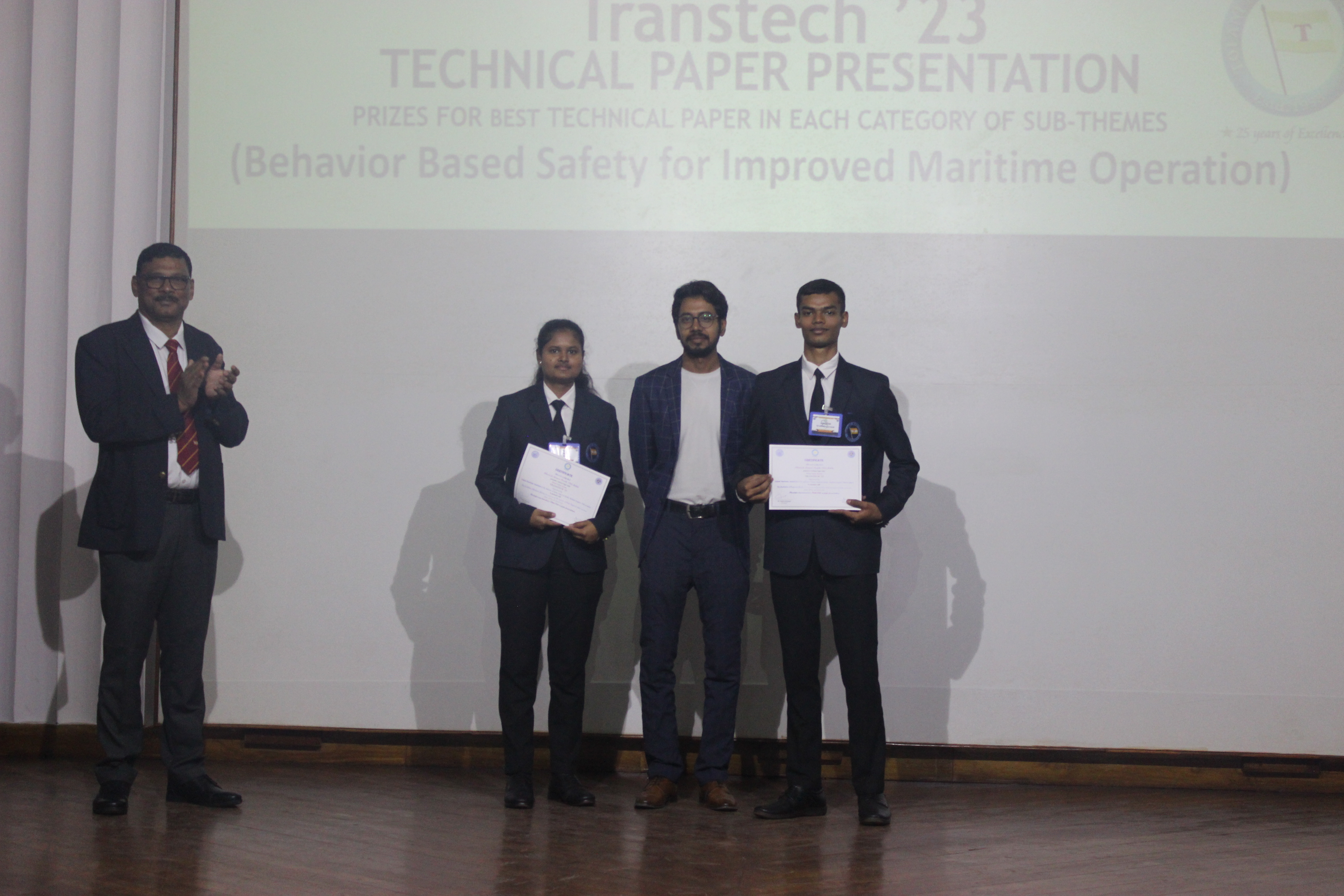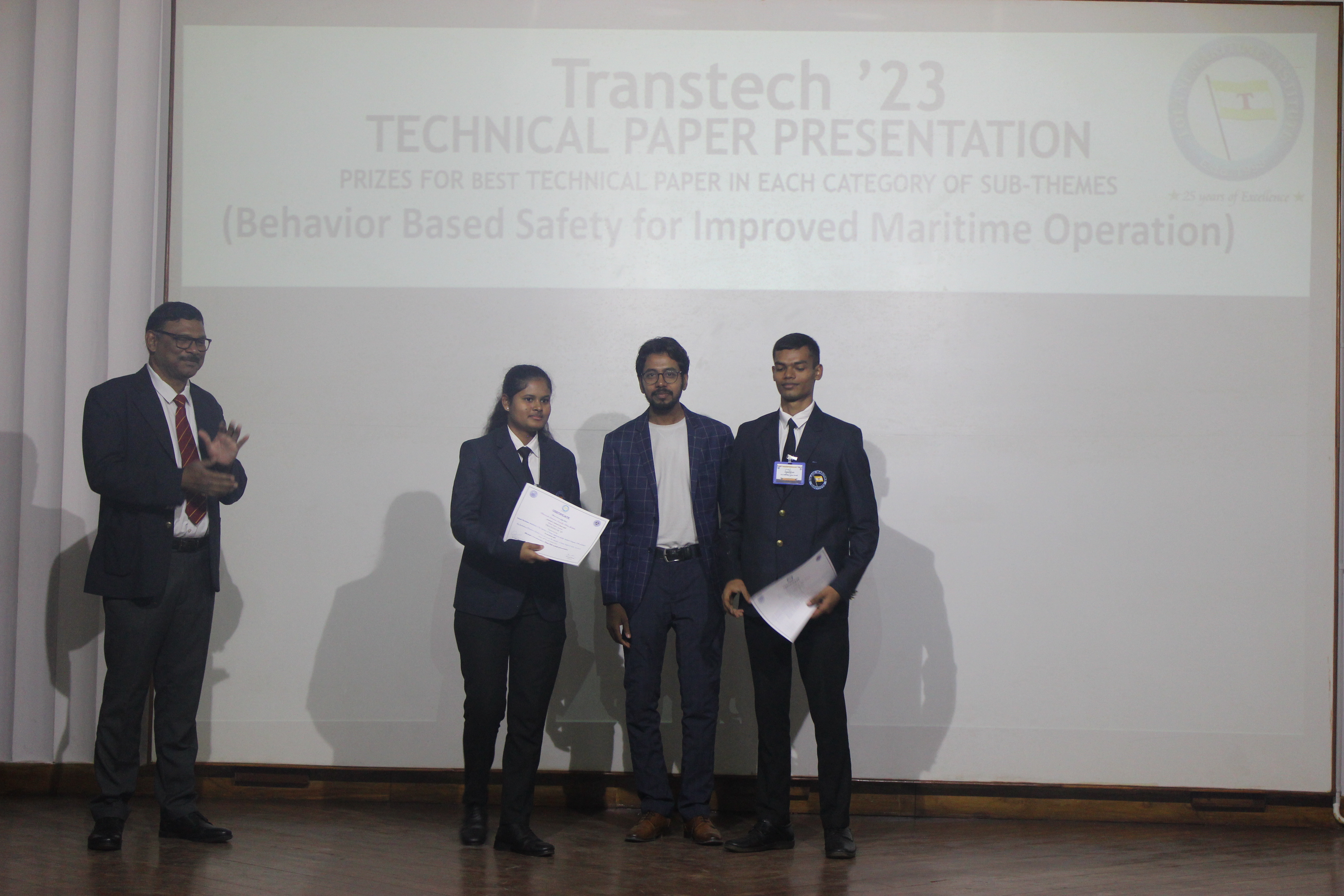 The Transtech Theme Poster winners were Cdt. Darshan Patidar and Cdt. Akshay Havaler. The wonders of their graphics and photography skills were being aired on all the three days as Cdt. Harsh Sharma and Cdt. Samarth Jogi won the Transtech Video Making Competition. The winners of the intelligence-testing Marine Quiz were Cdts. Gautam Saxena and Akshay Havaler from Tolani Maritime Institute, followed by Cdts. Abdul Gaffar and Don Baby from Anglo Eastern Maritime Academy in the second place and Cdts. Kumar Srivathsan and Dhanraj Deshpande from Hindustan Institute of Maritime Training in the third. A total of 21 entries were registered for the model making competition. The winner of Model Making Competition was Cdt. Bhavesh Kumar Sendh from Tolani Maritime Institute with his model on Cargo Hold Cleaning Robot. This was followed by models by other teams of TMI and Anglo Eastern Maritime Academy. Out of the 22 potential entries, the winner of the Poster Making Competition was Cdt. Devendraraj Chavan from IMU Vishakhapatnam for his poster on, "A Socio-Economic Solution for Inland Water Transportation".