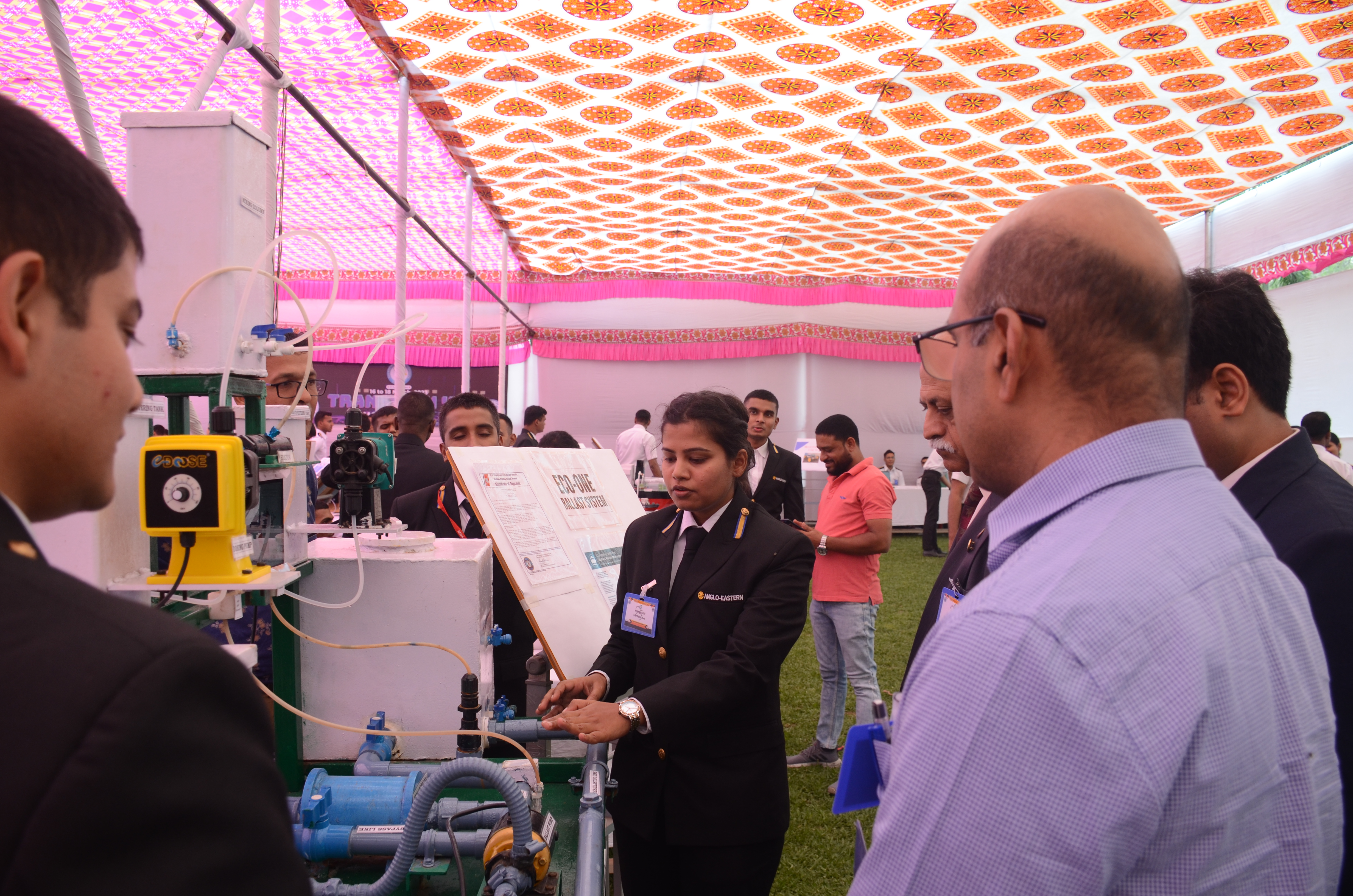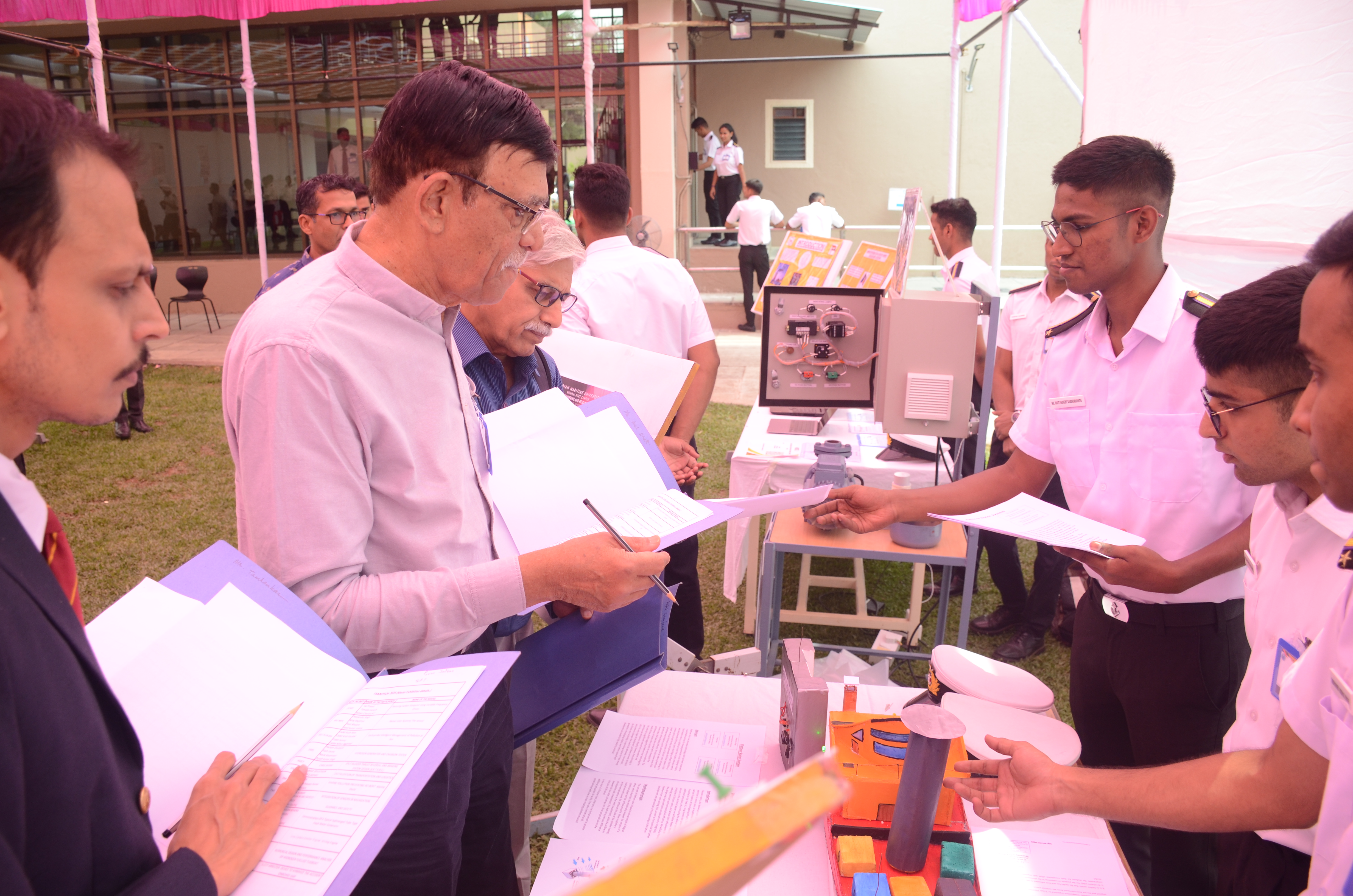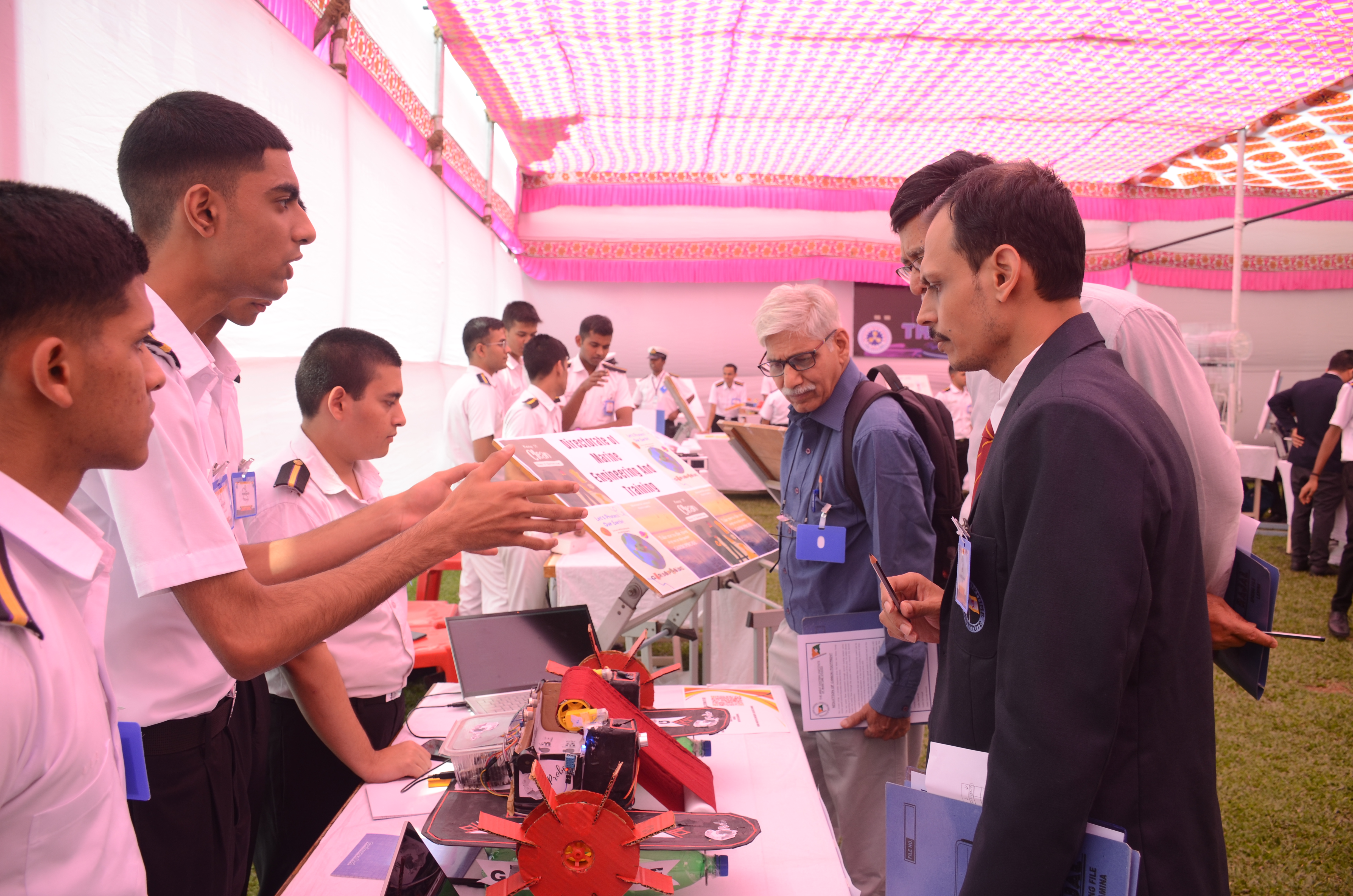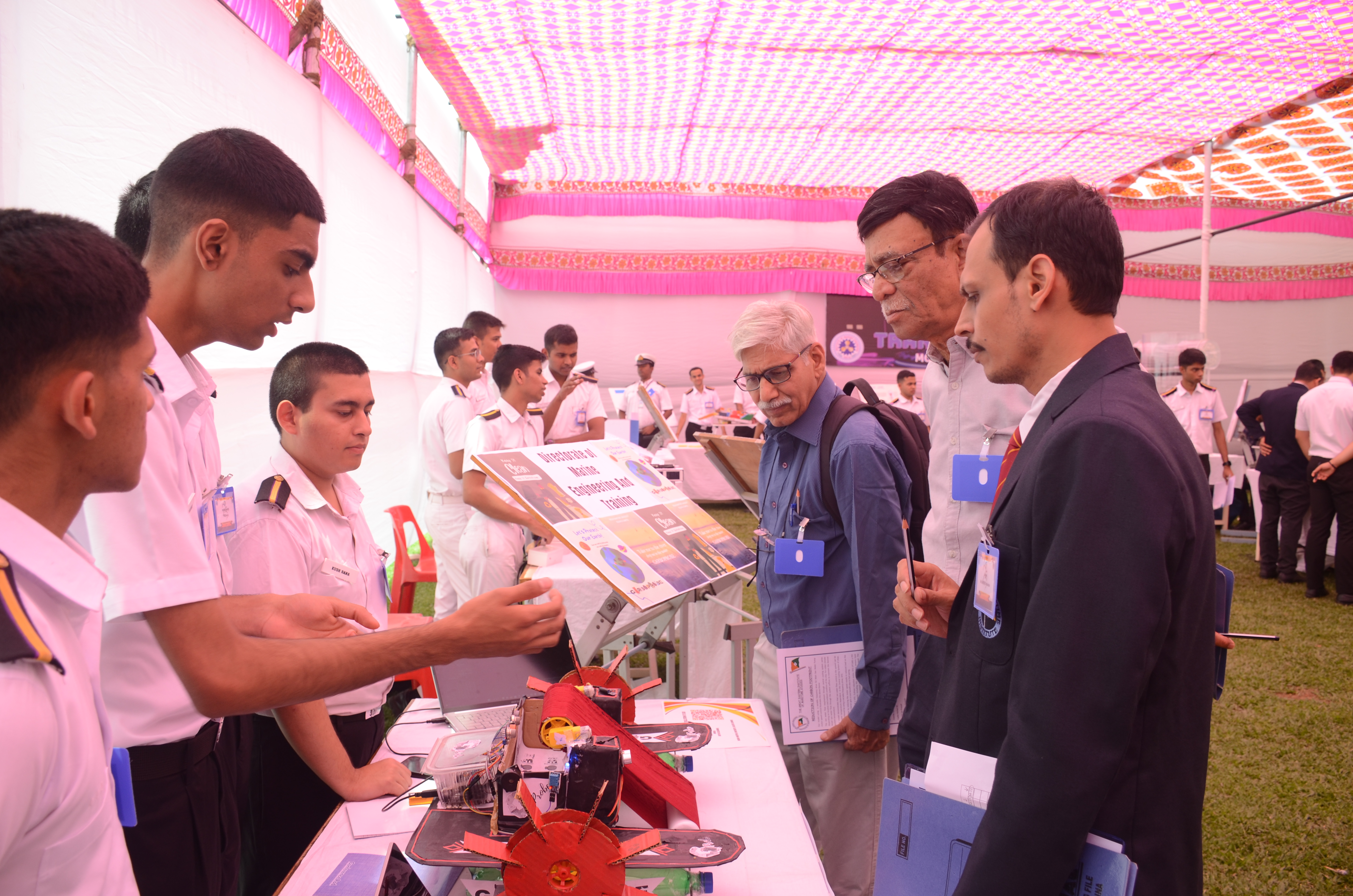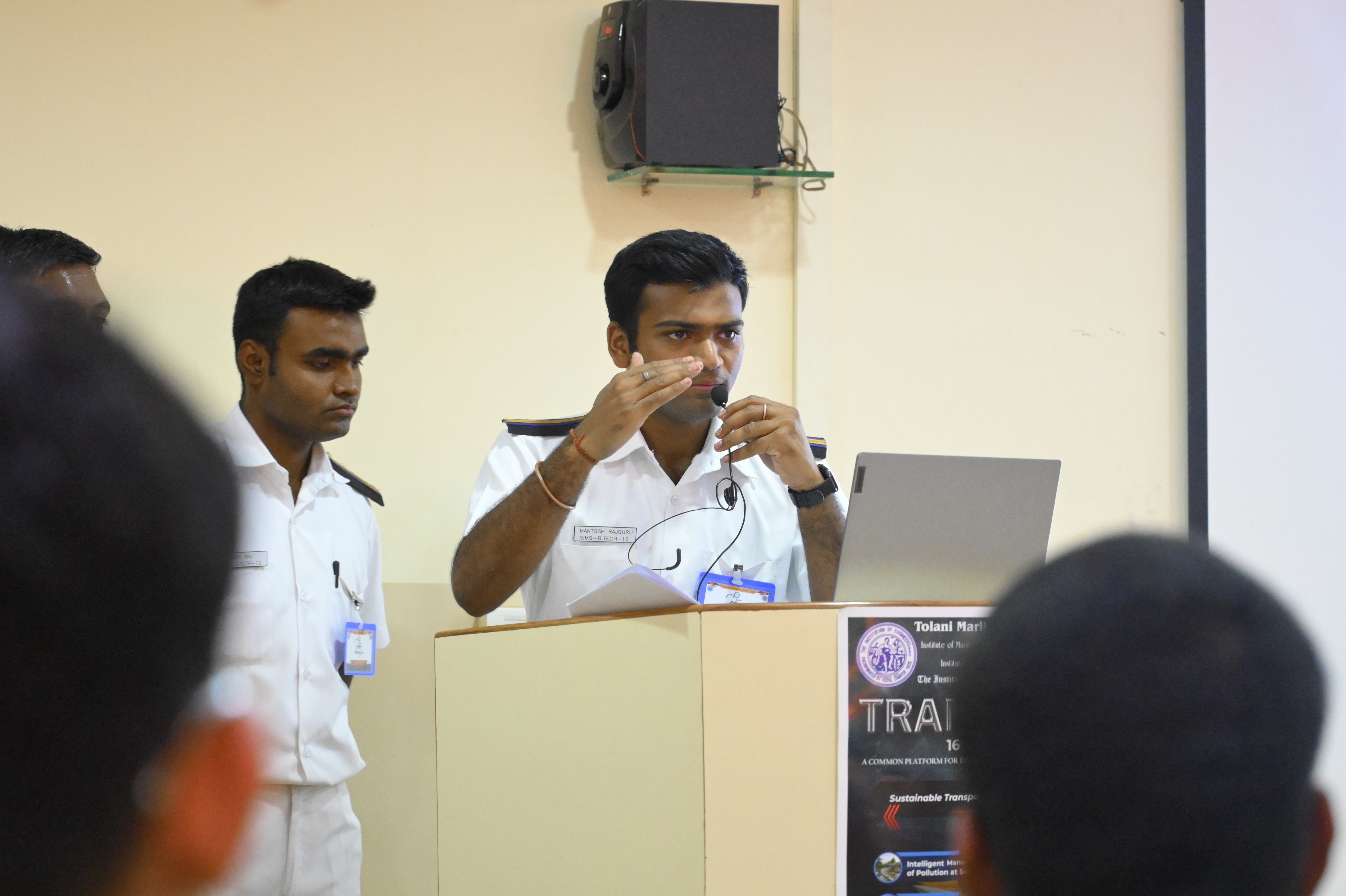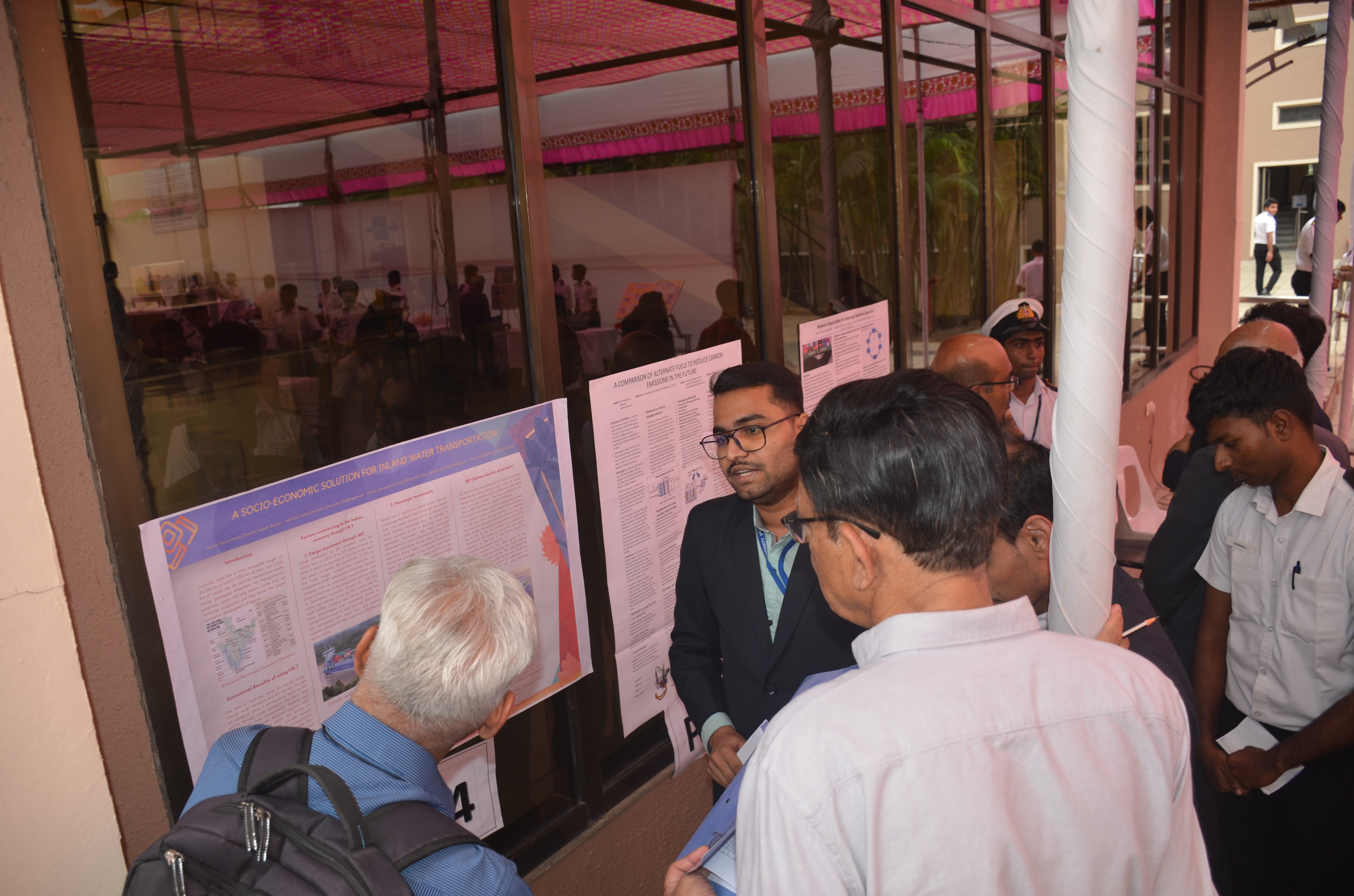The Transtech Theme Poster winners were Cdt. Darshan Patidar and Cdt. Akshay Havaler. The wonders of their graphics and photography skills were being aired on all the three days as Cdt. Harsh Sharma and Cdt. Samarth Jogi won the Transtech Video Making Competition. The winners of the intelligence-testing Marine Quiz were Cdts. Gautam Saxena and Akshay Havaler from Tolani Maritime Institute, followed by Cdts. Abdul Gaffar and Don Baby from Anglo Eastern Maritime Academy in the second place and Cdts. Kumar Srivathsan and Dhanraj Deshpande from Hindustan Institute of Maritime Training in the third. A total of 21 entries were registered for the model making competition. The winner of Model Making Competition was Cdt. Bhavesh Kumar Sendh from Tolani Maritime Institute with his model on Cargo Hold Cleaning Robot. This was followed by models by other teams of TMI and Anglo Eastern Maritime Academy. Out of the 22 potential entries, the winner of the Poster Making Competition was Cdt. Devendraraj Chavan from IMU Vishakhapatnam for his poster on, "A Socio-Economic Solution for Inland Water Transportation".