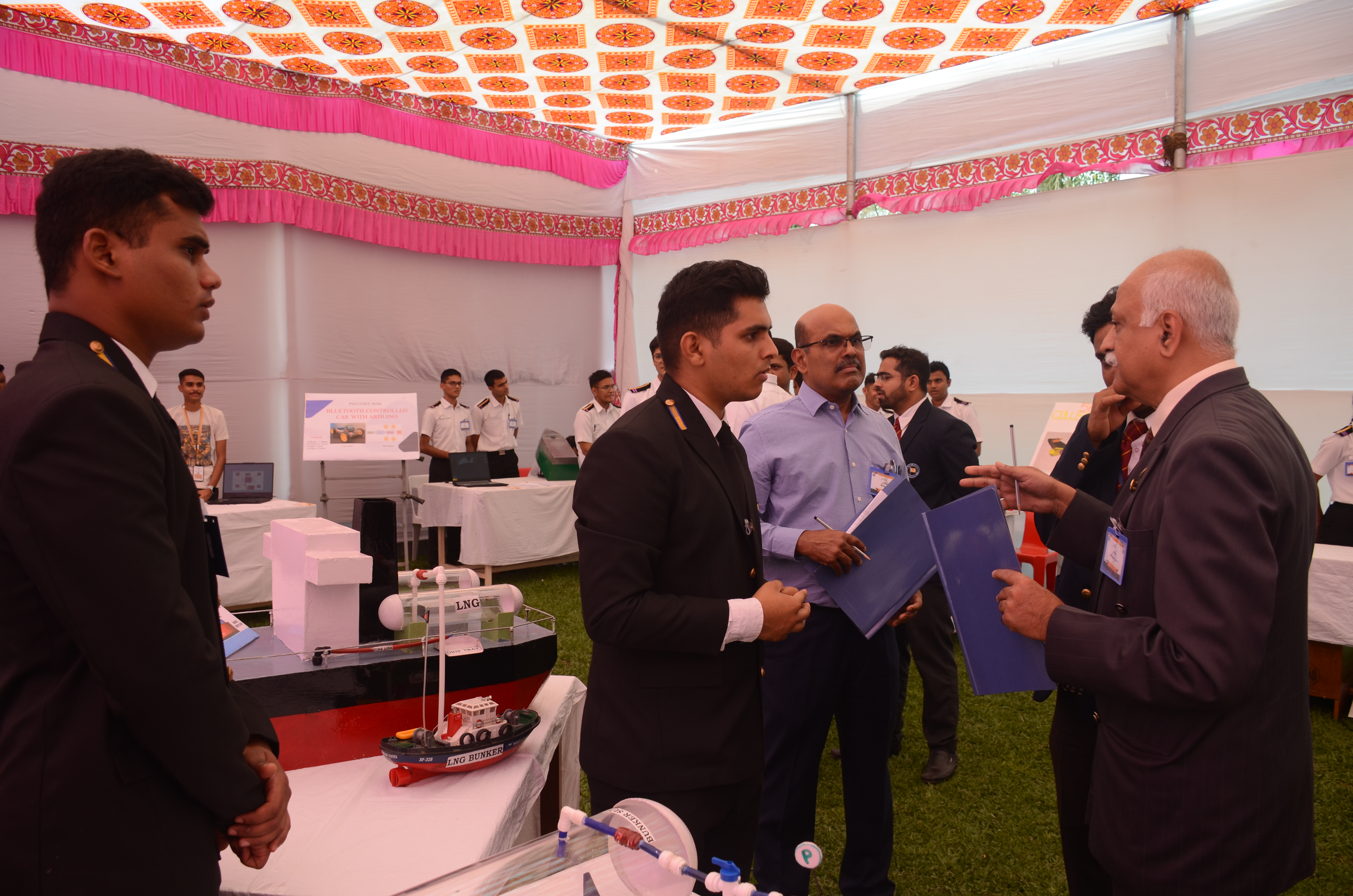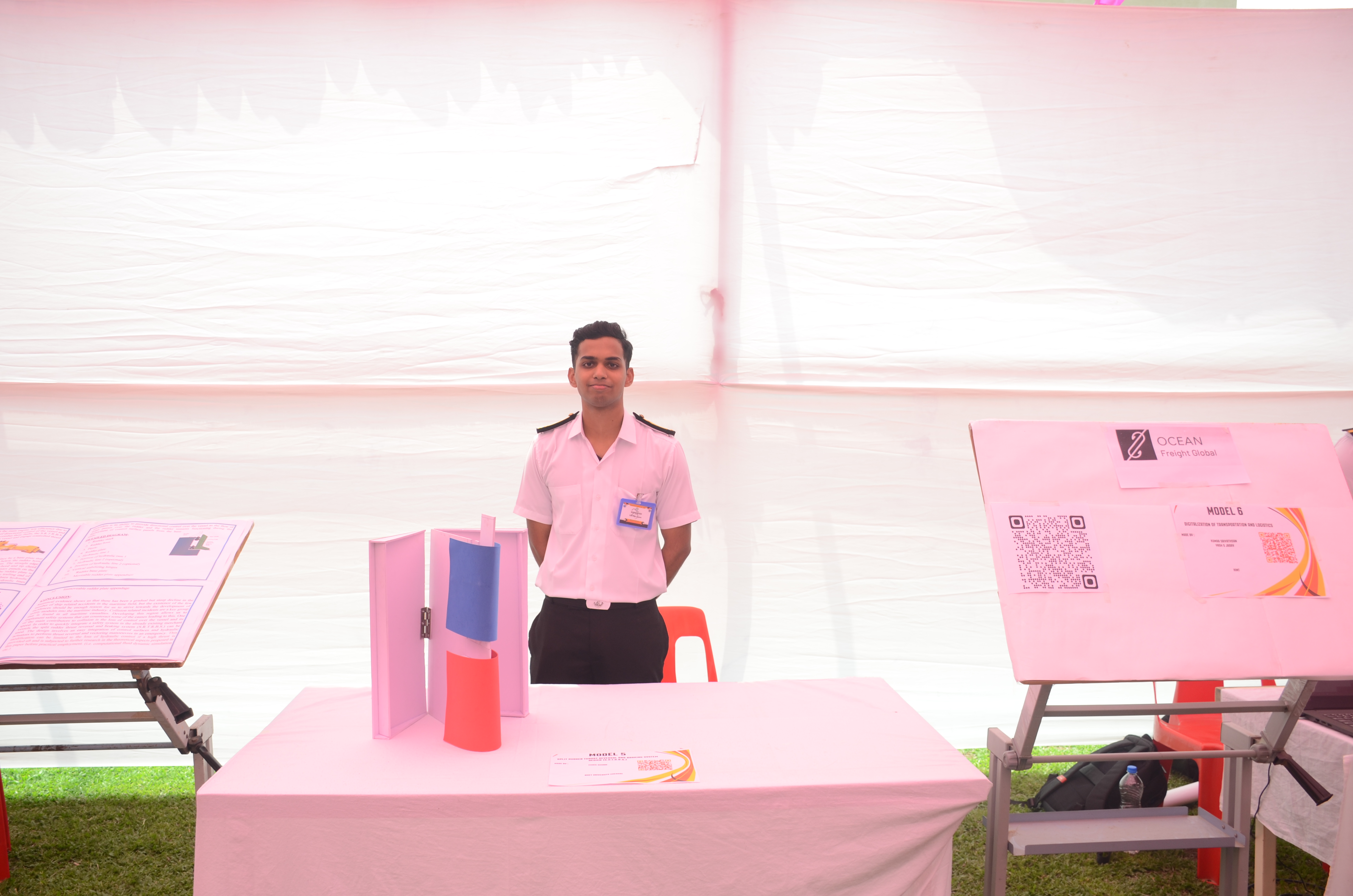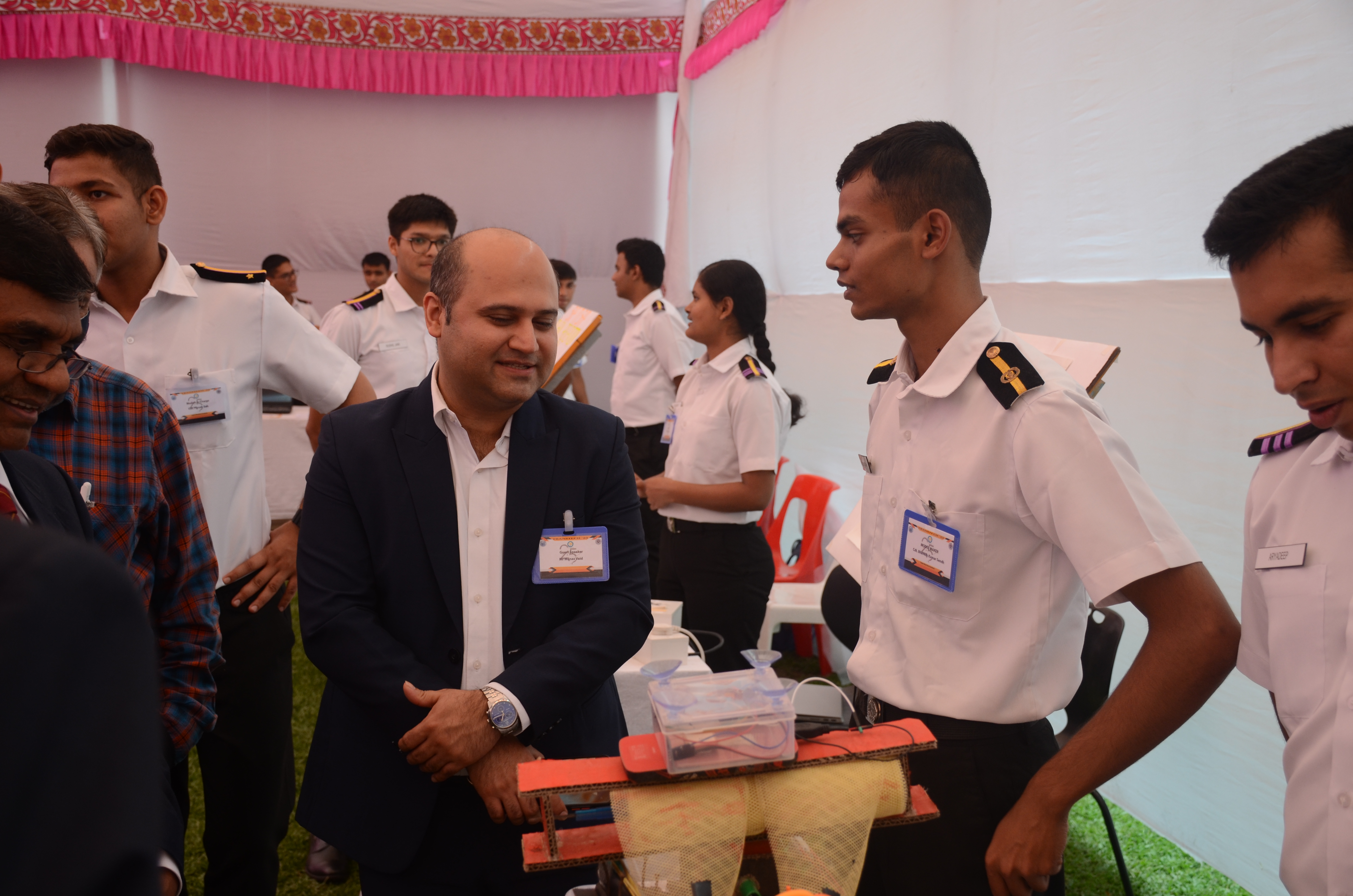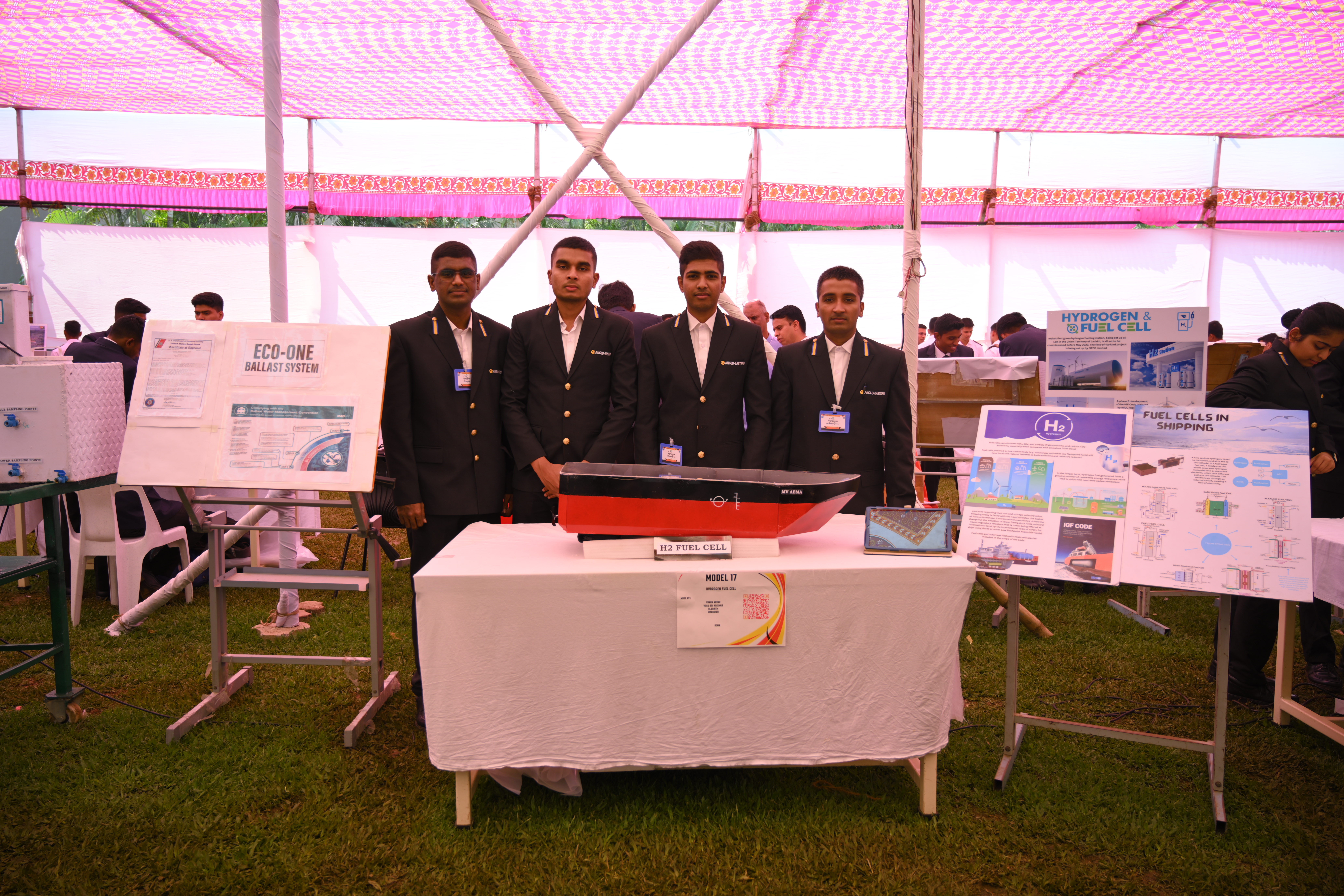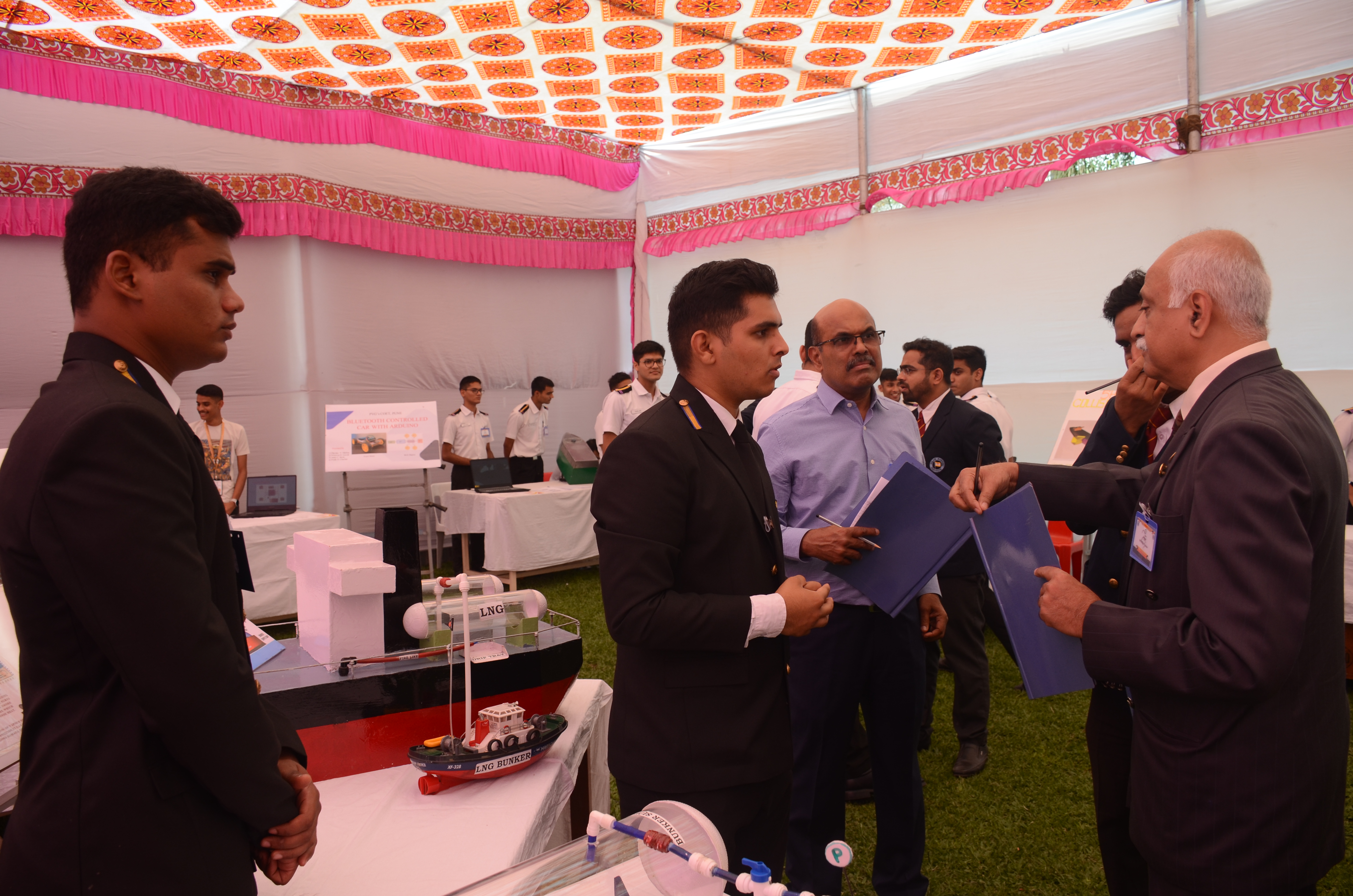 The Transtech Theme Poster winners were Cdt. Darshan Patidar and Cdt. Akshay Havaler. The wonders of their graphics and photography skills were being aired on all the three days as Cdt. Harsh Sharma and Cdt. Samarth Jogi won the Transtech Video Making Competition. The winners of the intelligence-testing Marine Quiz were Cdts. Gautam Saxena and Akshay Havaler from Tolani Maritime Institute, followed by Cdts. Abdul Gaffar and Don Baby from Anglo Eastern Maritime Academy in the second place and Cdts. Kumar Srivathsan and Dhanraj Deshpande from Hindustan Institute of Maritime Training in the third. A total of 21 entries were registered for the model making competition. The winner of Model Making Competition was Cdt. Bhavesh Kumar Sendh from Tolani Maritime Institute with his model on Cargo Hold Cleaning Robot. This was followed by models by other teams of TMI and Anglo Eastern Maritime Academy. Out of the 22 potential entries, the winner of the Poster Making Competition was Cdt. Devendraraj Chavan from IMU Vishakhapatnam for his poster on, "A Socio-Economic Solution for Inland Water Transportation".