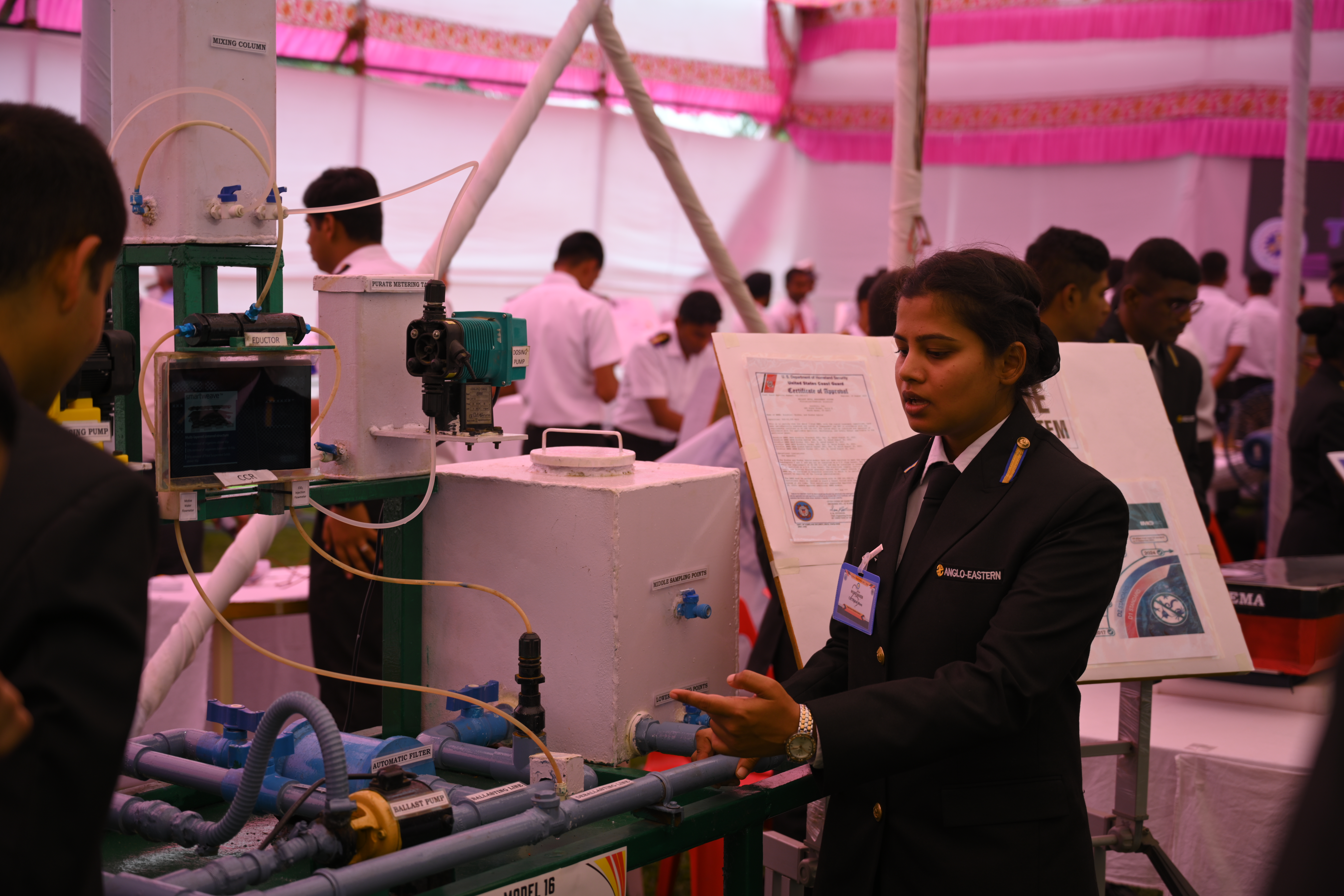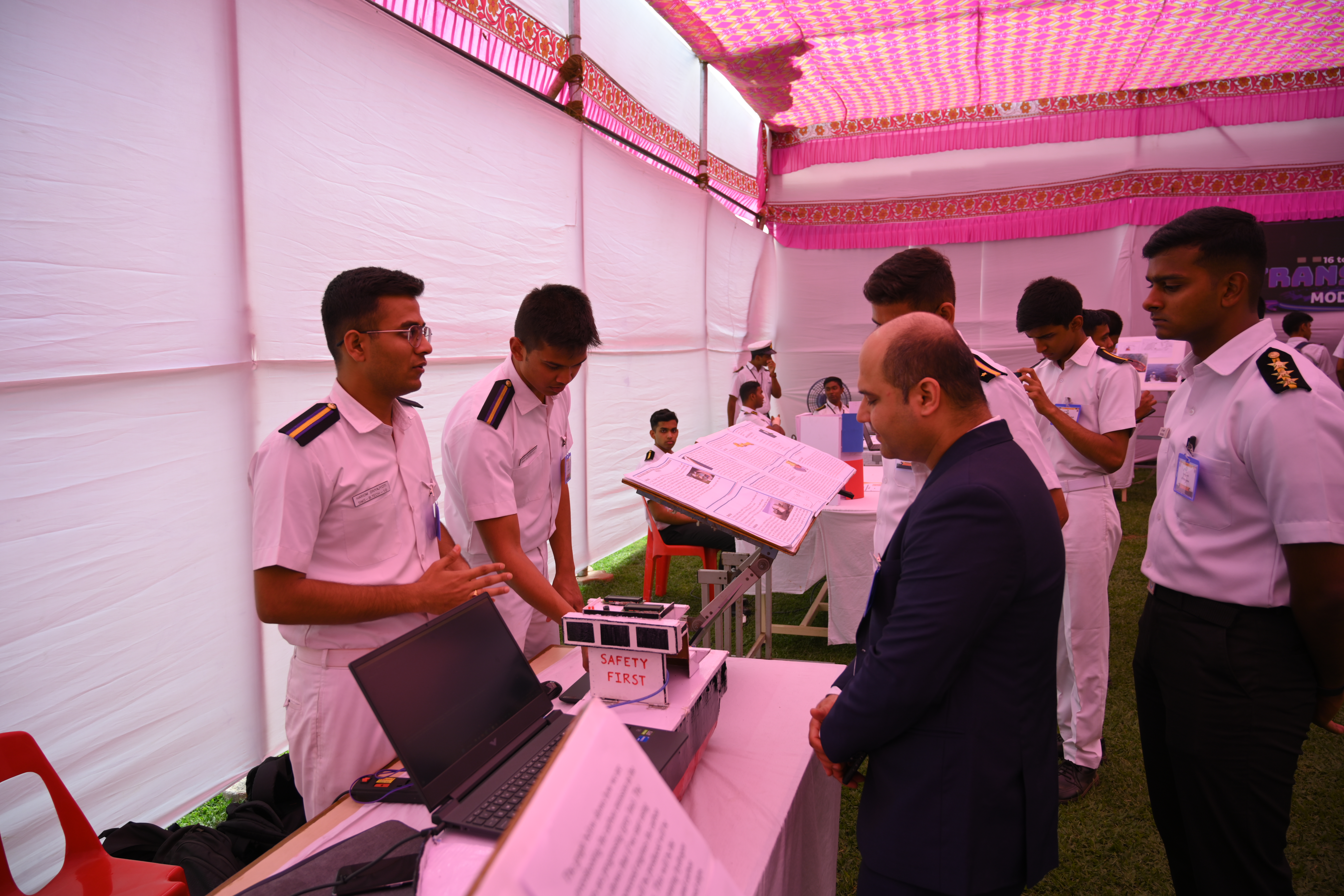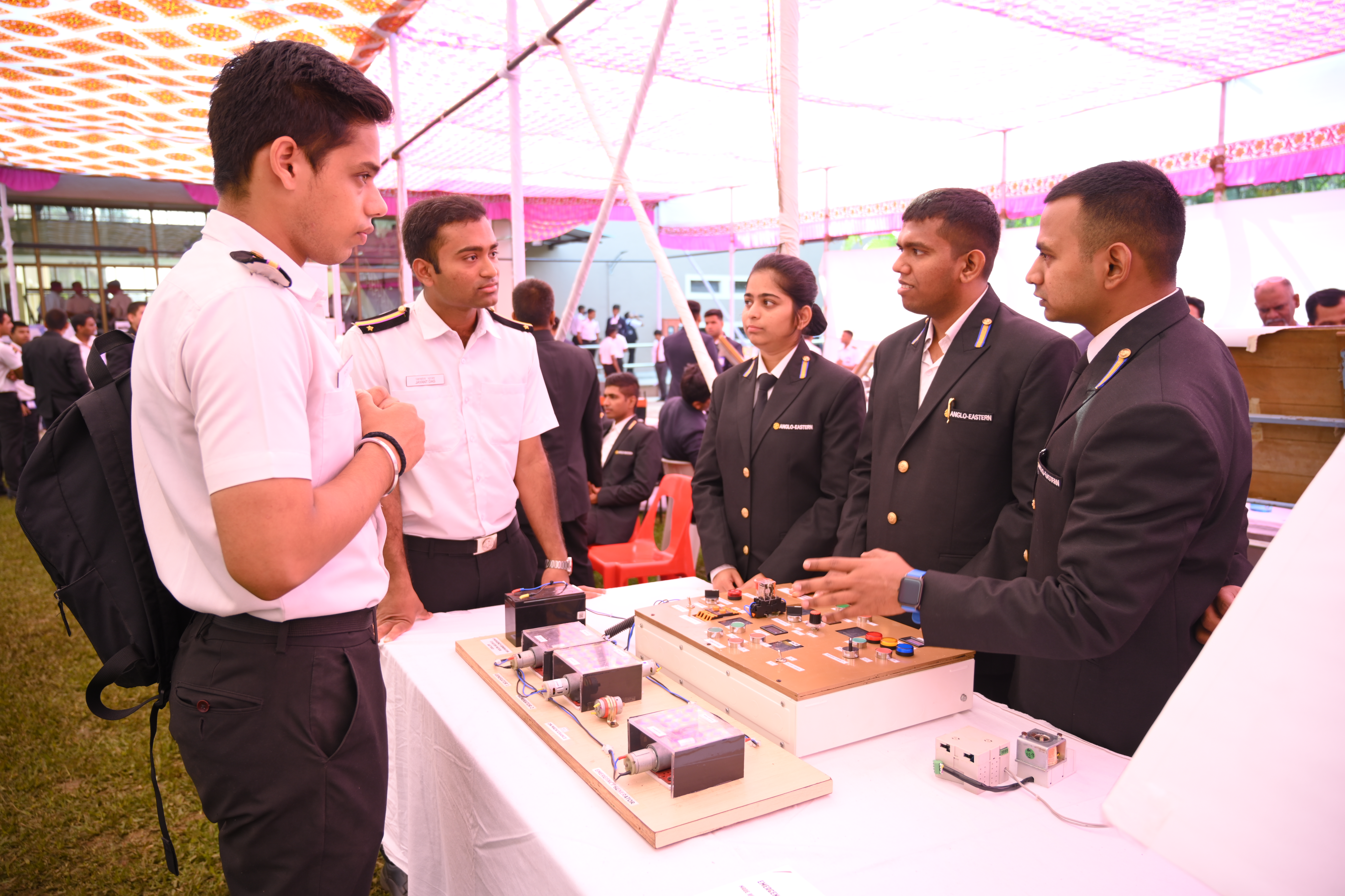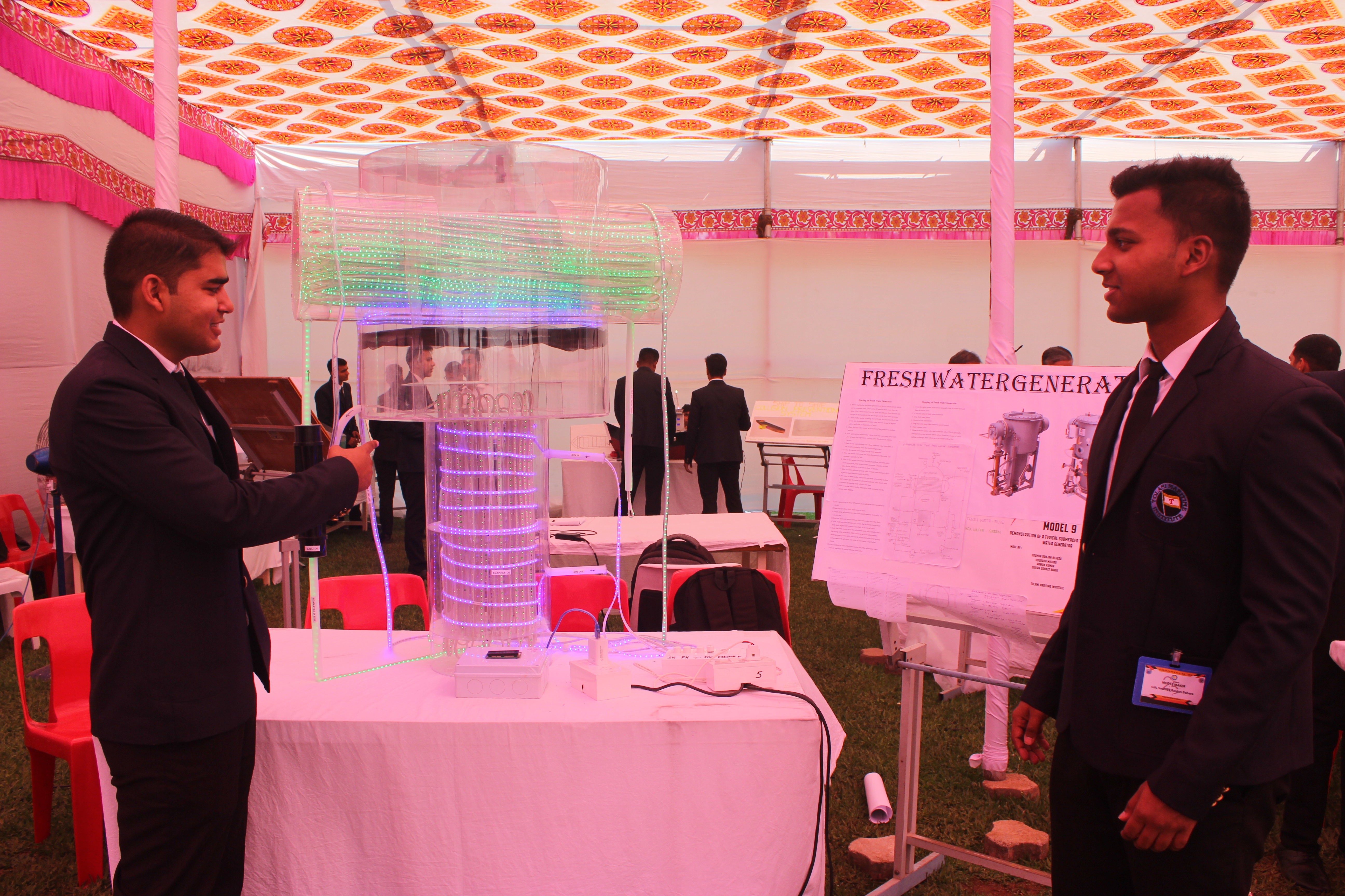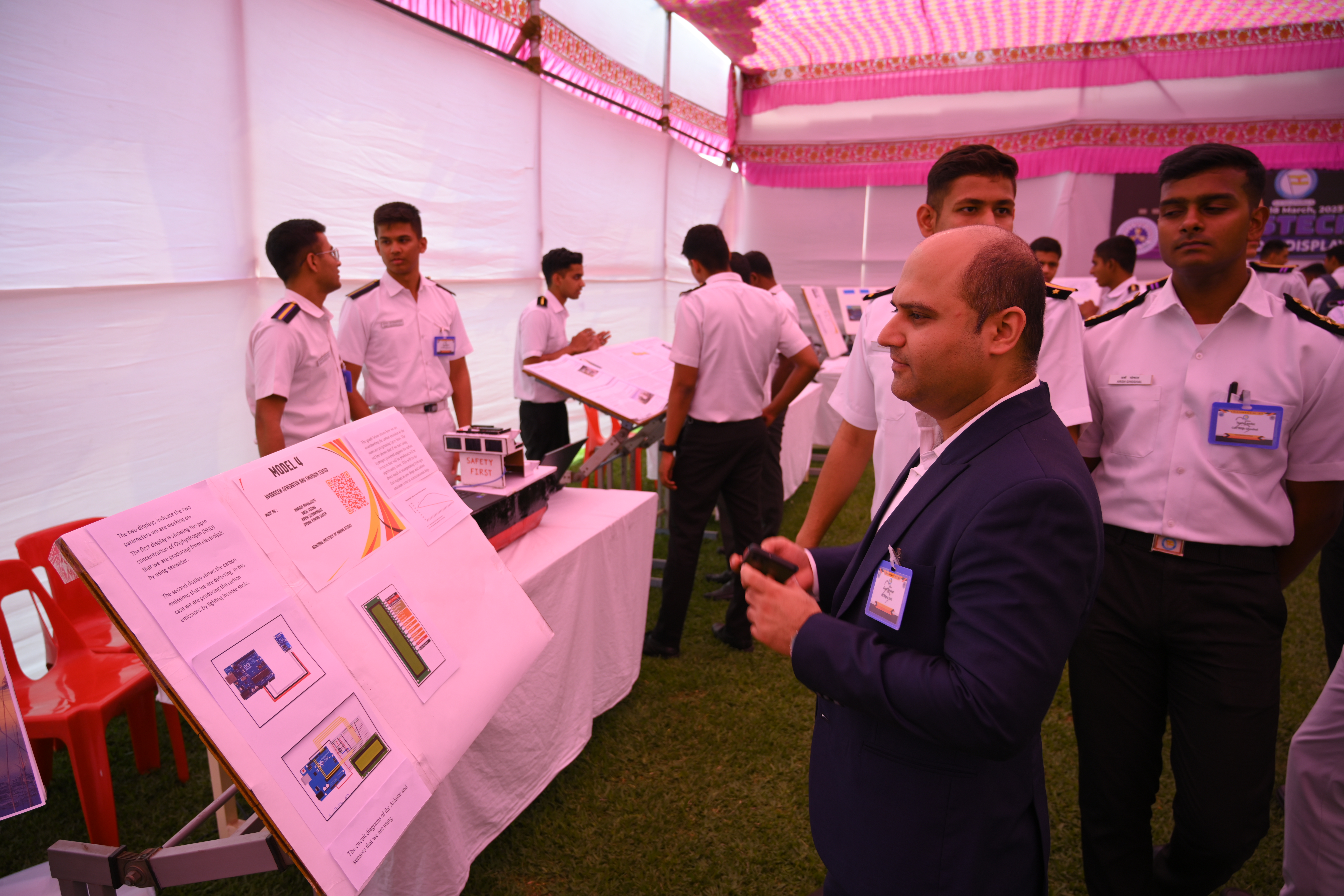 The Transtech Theme Poster winners were Cdt. Darshan Patidar and Cdt. Akshay Havaler. The wonders of their graphics and photography skills were being aired on all the three days as Cdt. Harsh Sharma and Cdt. Samarth Jogi won the Transtech Video Making Competition. The winners of the intelligence-testing Marine Quiz were Cdts. Gautam Saxena and Akshay Havaler from Tolani Maritime Institute, followed by Cdts. Abdul Gaffar and Don Baby from Anglo Eastern Maritime Academy in the second place and Cdts. Kumar Srivathsan and Dhanraj Deshpande from Hindustan Institute of Maritime Training in the third. A total of 21 entries were registered for the model making competition. The winner of Model Making Competition was Cdt. Bhavesh Kumar Sendh from Tolani Maritime Institute with his model on Cargo Hold Cleaning Robot. This was followed by models by other teams of TMI and Anglo Eastern Maritime Academy. Out of the 22 potential entries, the winner of the Poster Making Competition was Cdt. Devendraraj Chavan from IMU Vishakhapatnam for his poster on, "A Socio-Economic Solution for Inland Water Transportation".
