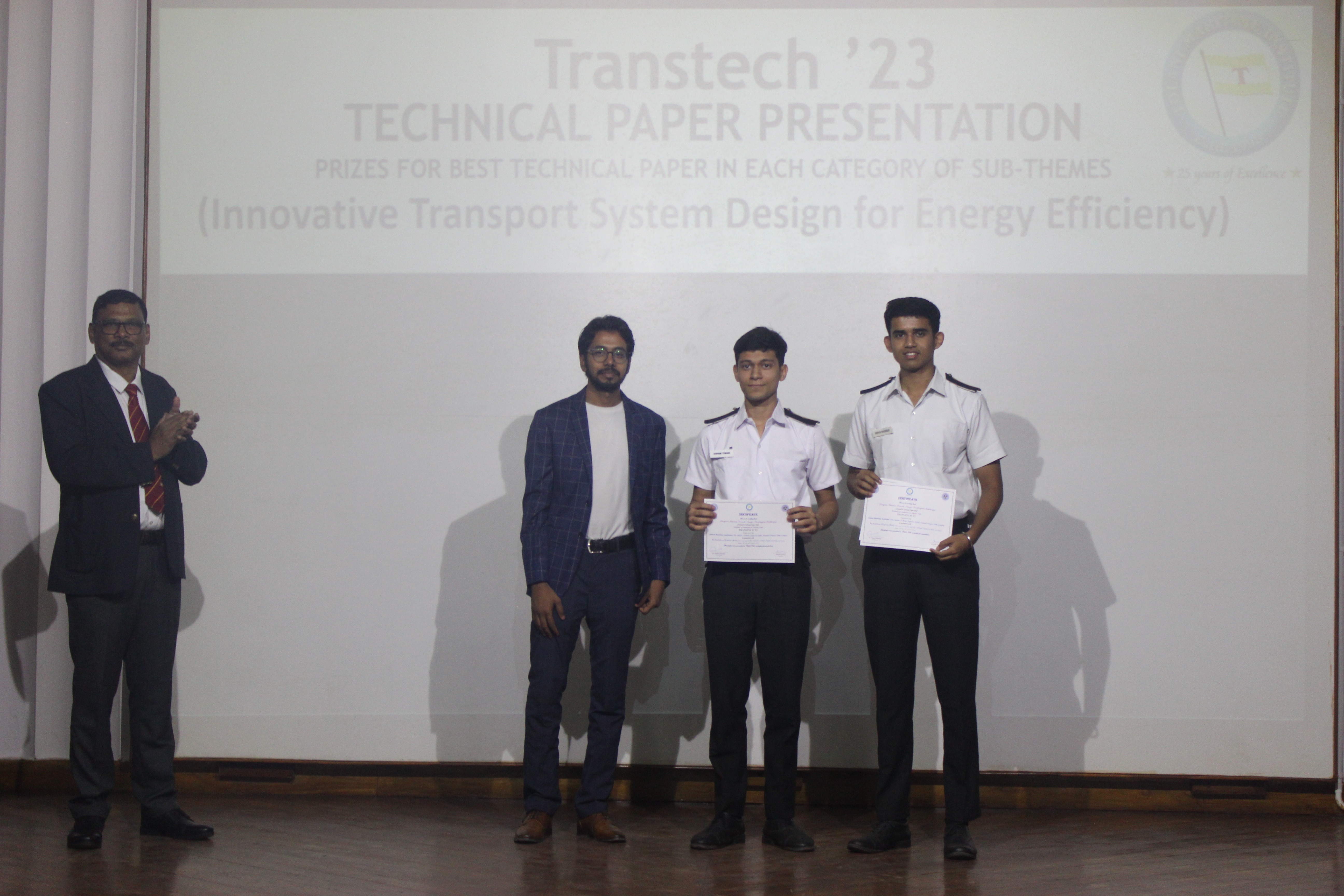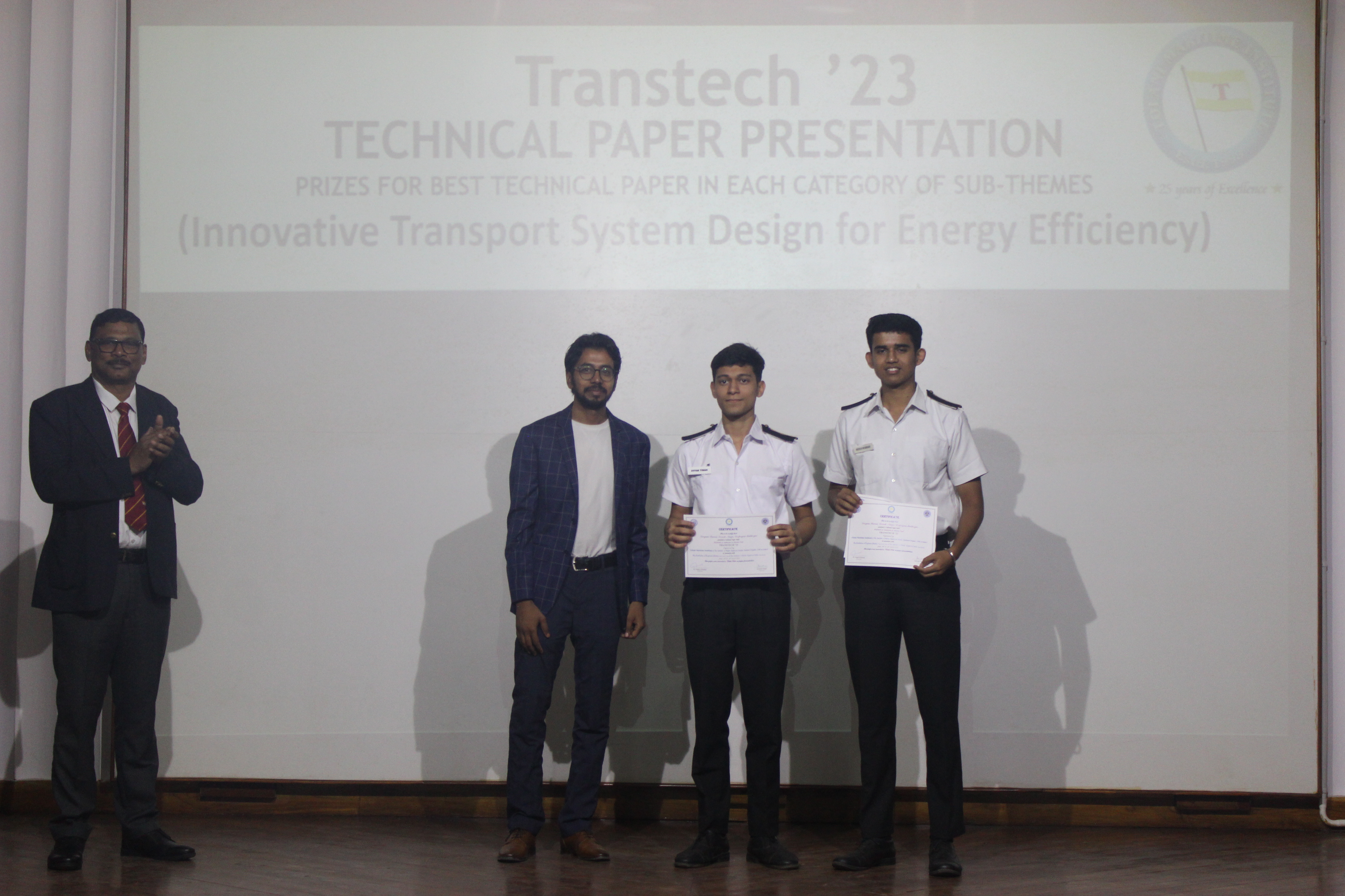 6. For the sub-theme Innovative Transport System Design for Energy Efficiency – the winners from IMU, Kolkata are cadets Divyam Tiwari, Devesh Nimje, Deepayan Mukherjee with their paper titled Potential of Ammonia as Marine Fuel.