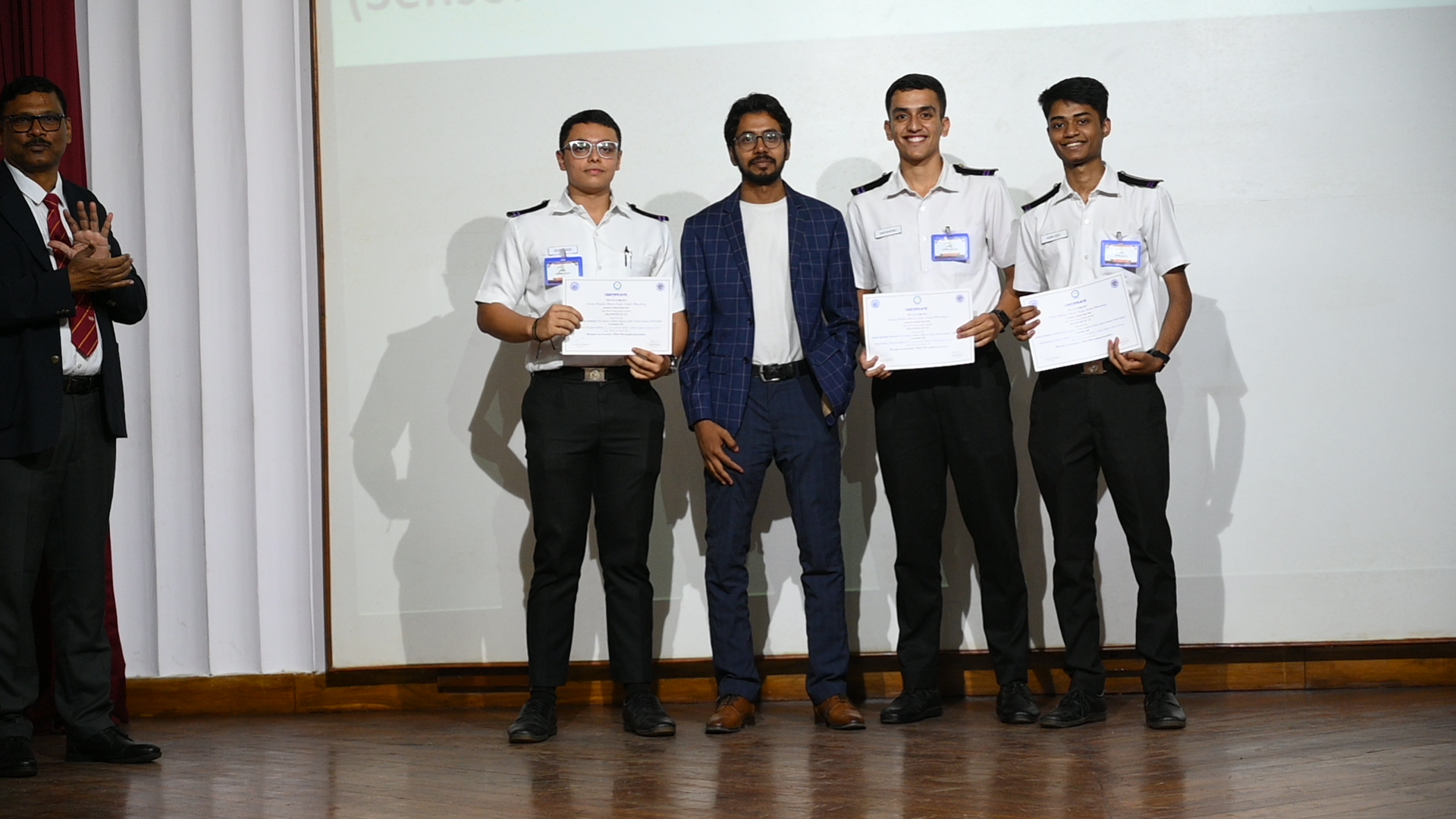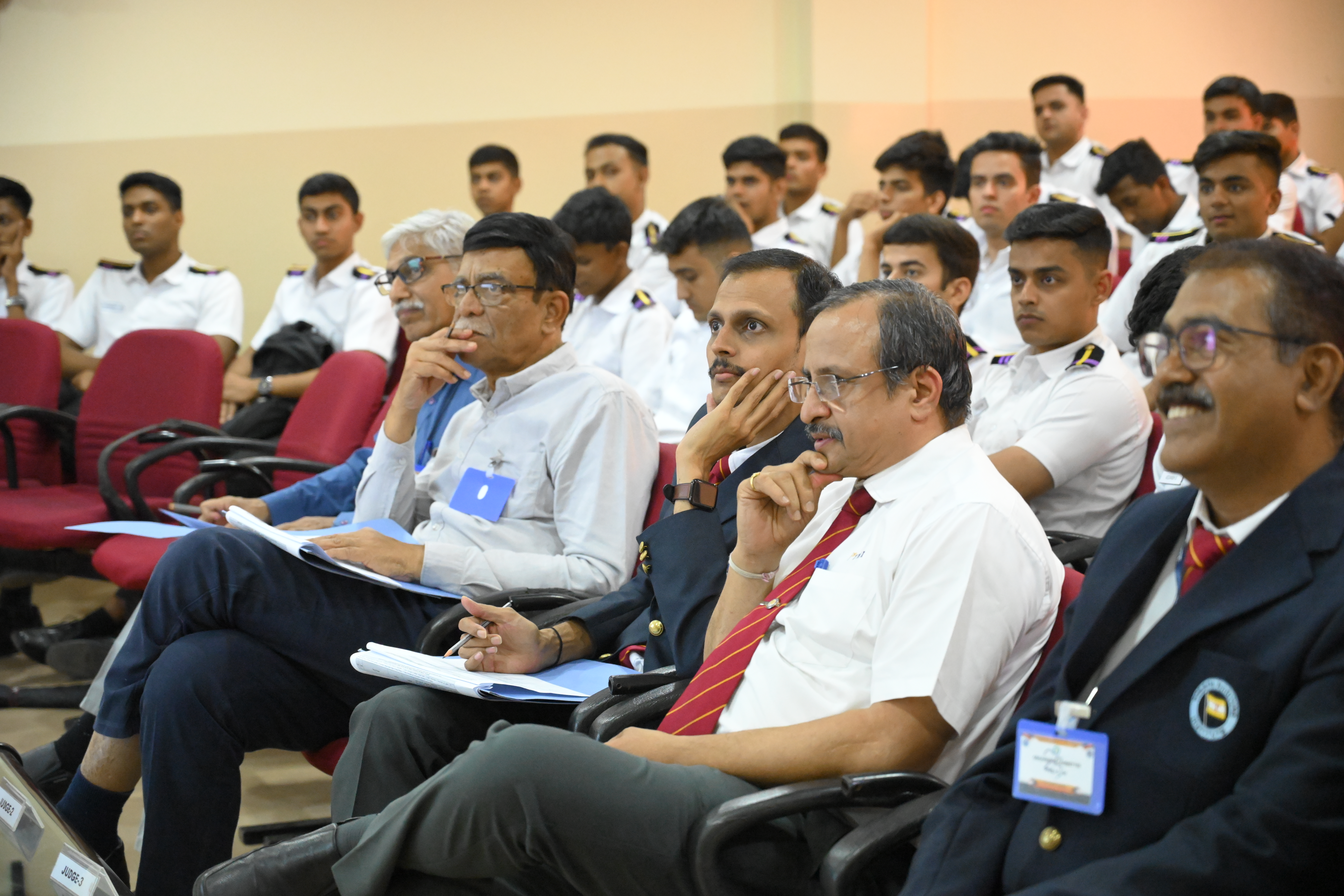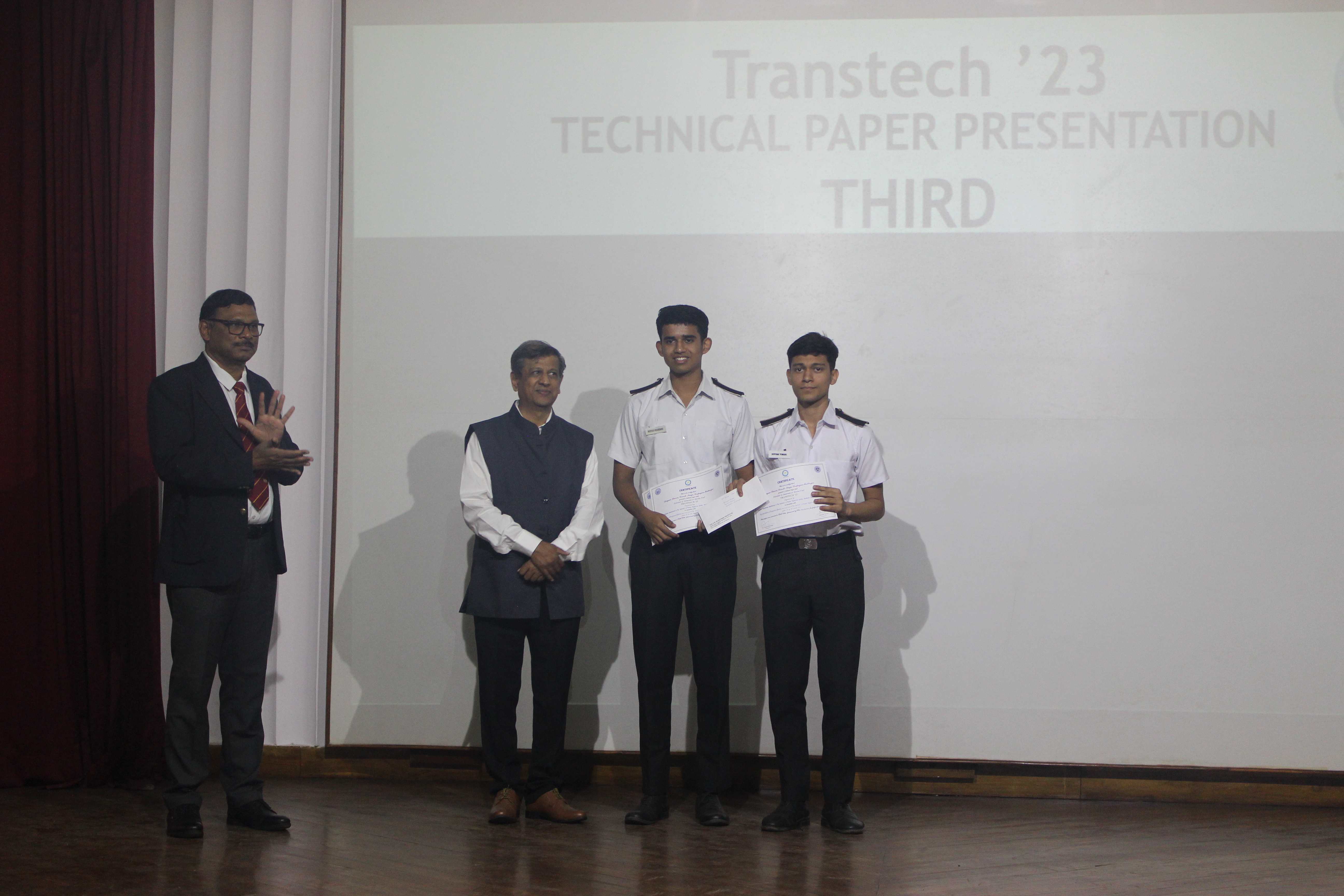 The technical paper presentation, being the highlight of the event, had its top three technical papers in the following order; the third place was secured by Cdts. Divyam Tiwari, Devesh Nimje, Deepayan Mukherjee from IMU, Kolkata for their paper titled, "Potential of Ammonia as a Marine Fuel", followed by the second place bearer, Cdt. Nirjhar Sarkar from U V Patel, College of Engineering for the paper titled, "Reduction of Carbon Footprints in Shipping Industry". The winner of the paper presentation competition we're Cdts. Mohit Shangari, Badrid Dona and Satwik Dixit from IMU, Vishakhapatnam for their paper titled, "Socio-Economic Analysis of Blue Fuel".