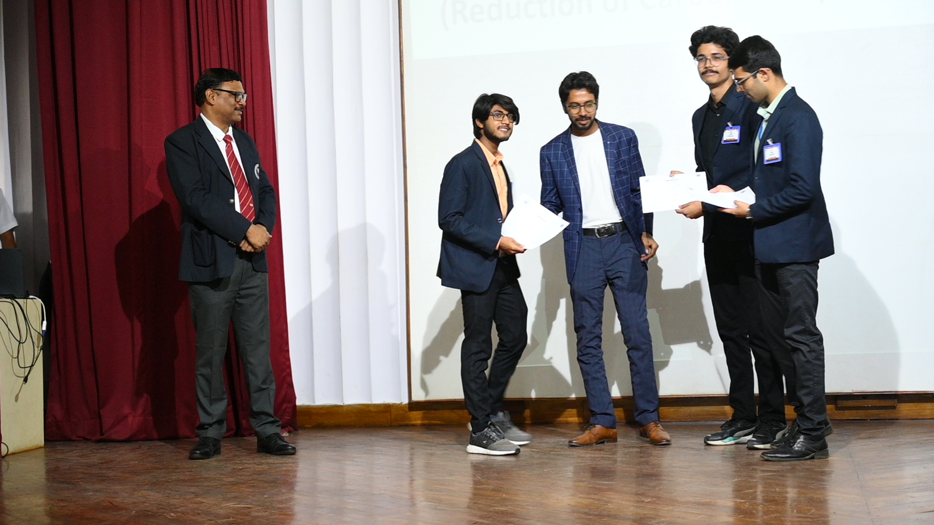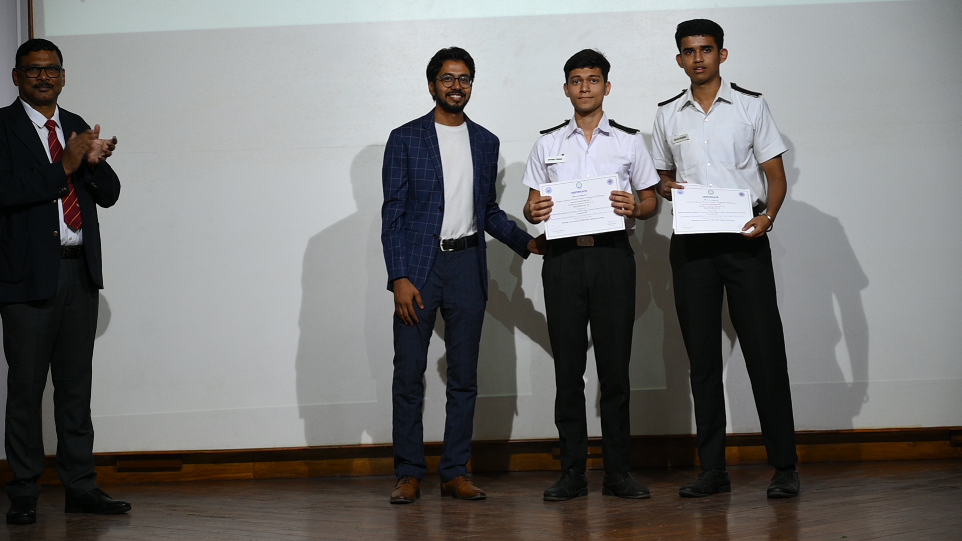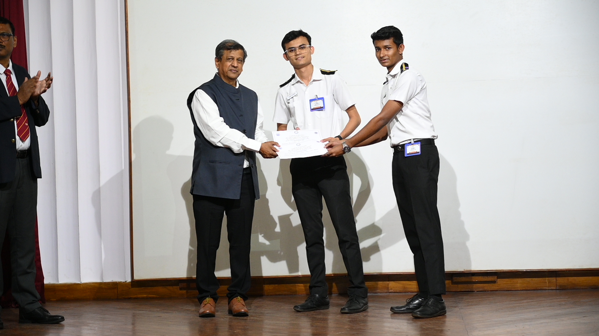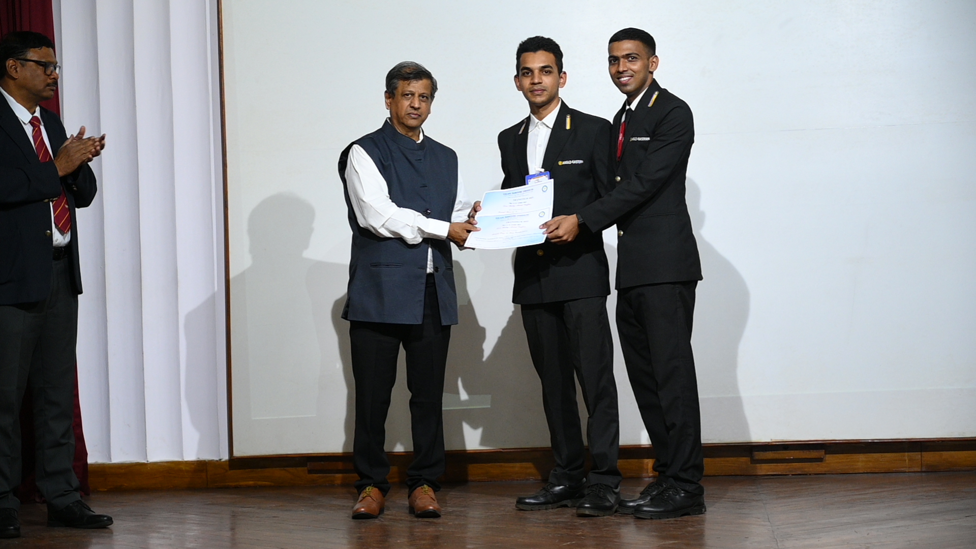 The technical paper presentation, being the highlight of the event, had its top three technical papers in the following order; the third place was secured by Cdts. Divyam Tiwari, Devesh Nimje, Deepayan Mukherjee from IMU, Kolkata for their paper titled, "Potential of Ammonia as a Marine Fuel", followed by the second place bearer, Cdt. Nirjhar Sarkar from U V Patel, College of Engineering for the paper titled, "Reduction of Carbon Footprints in Shipping Industry". The winner of the paper presentation competition we're Cdts. Mohit Shangari, Badrid Dona and Satwik Dixit from IMU, Vishakhapatnam for their paper titled, "Socio-Economic Analysis of Blue Fuel".