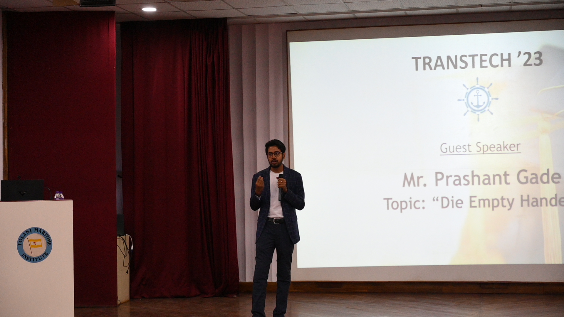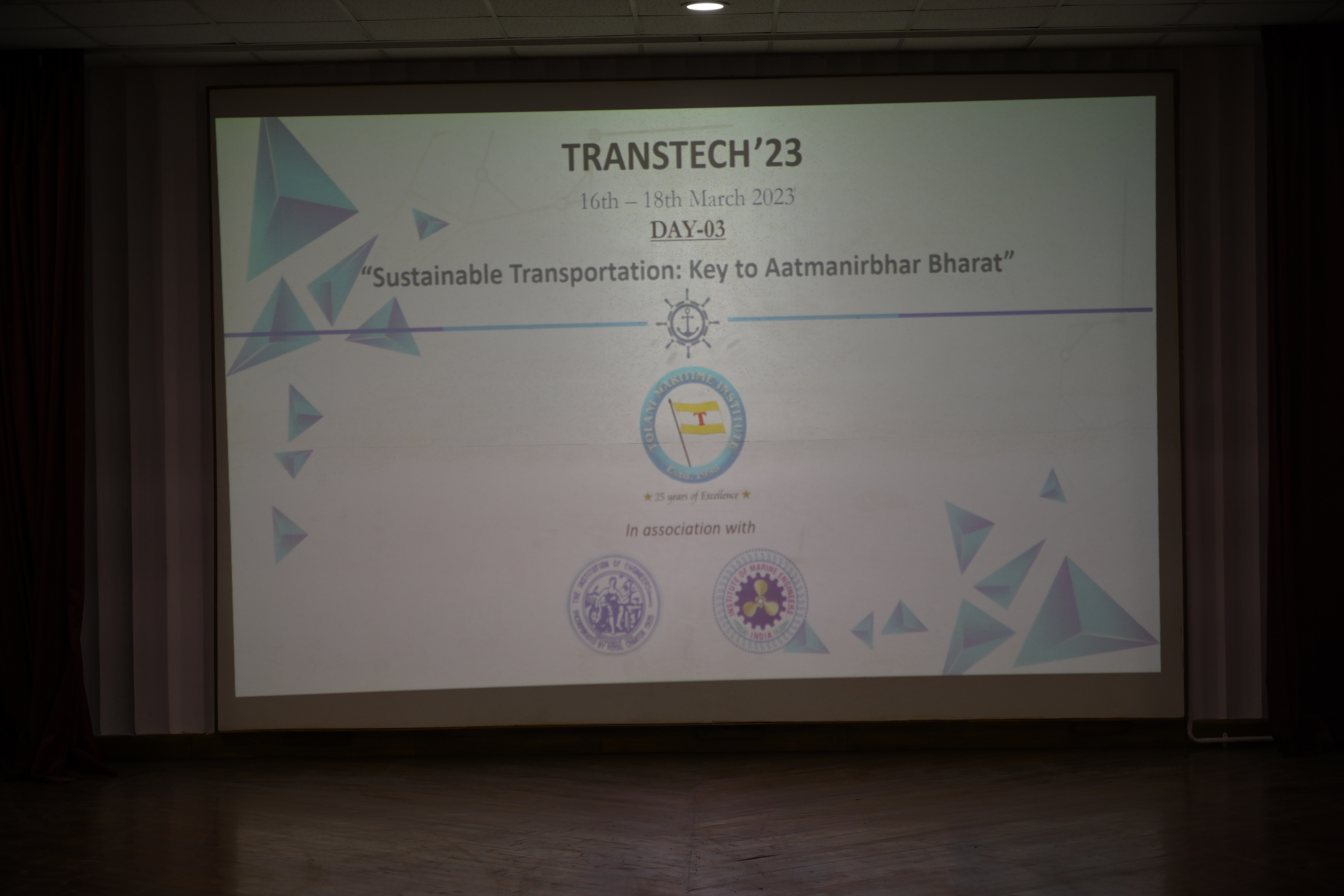 The Transtech 2023 event was organized by Tolani Maritime Institute, Pune & Institute of Marine Engineers (India), Student Chapter, TMI, Pune in association with Institute of Marine Engineers (India), Pune Branch & The Institution of Engineers (India), Pune Local Centre from 16th (Thursday) to 18th (Saturday) March, 2023, at TMI Campus.