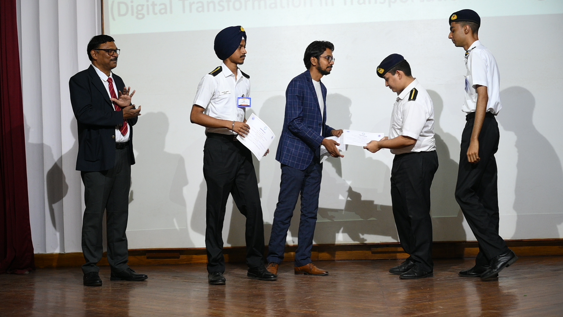 7. For the sub-theme Role of Information and Communication Technology in Future Shipping - the winners for their paper titled ‘Sustainable Transportation: Key to Atmanirbhar Bharat’ are cadets Anant Kumar, Abhinandan Rai & Vaishnav Sharma from IMU Chennai.