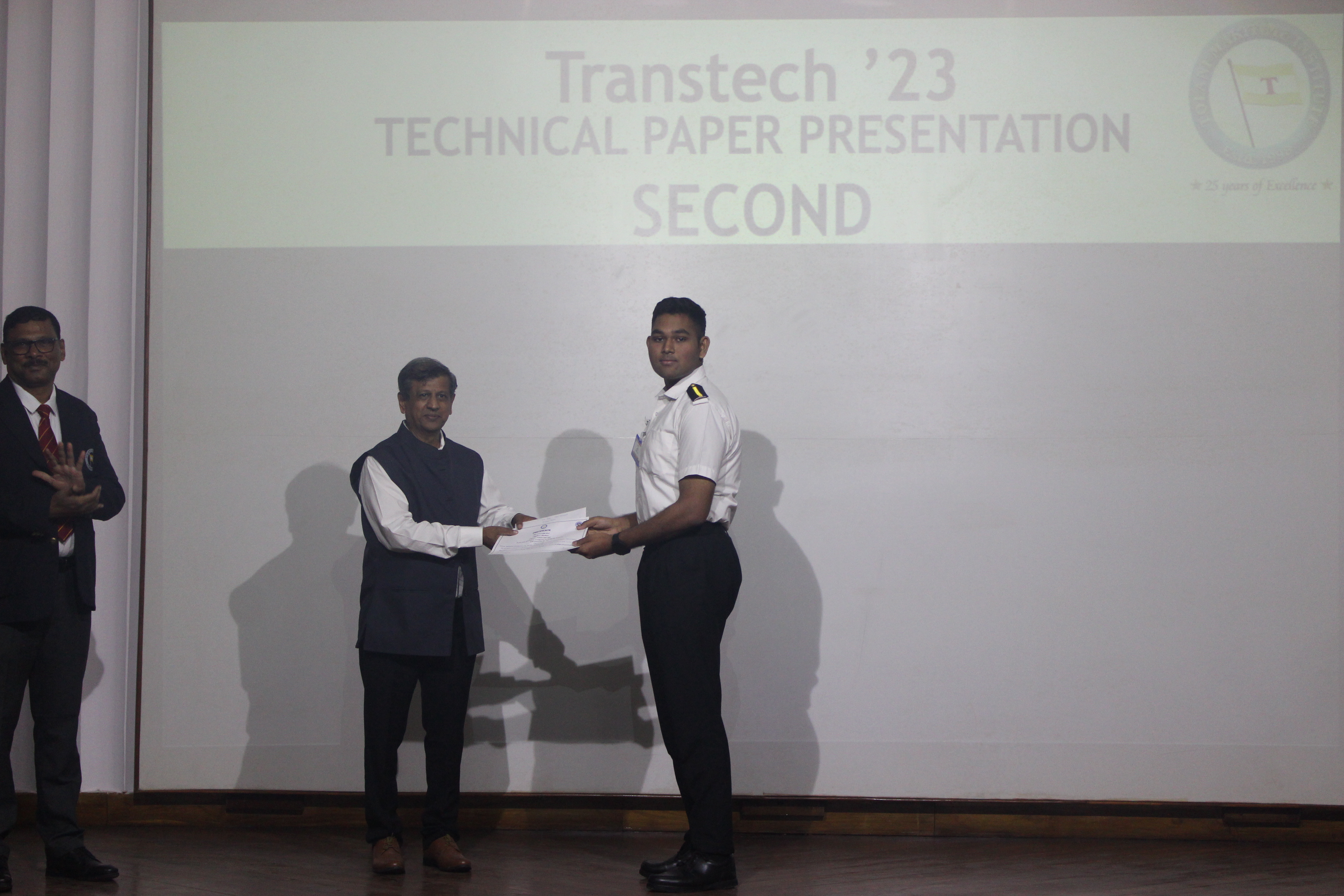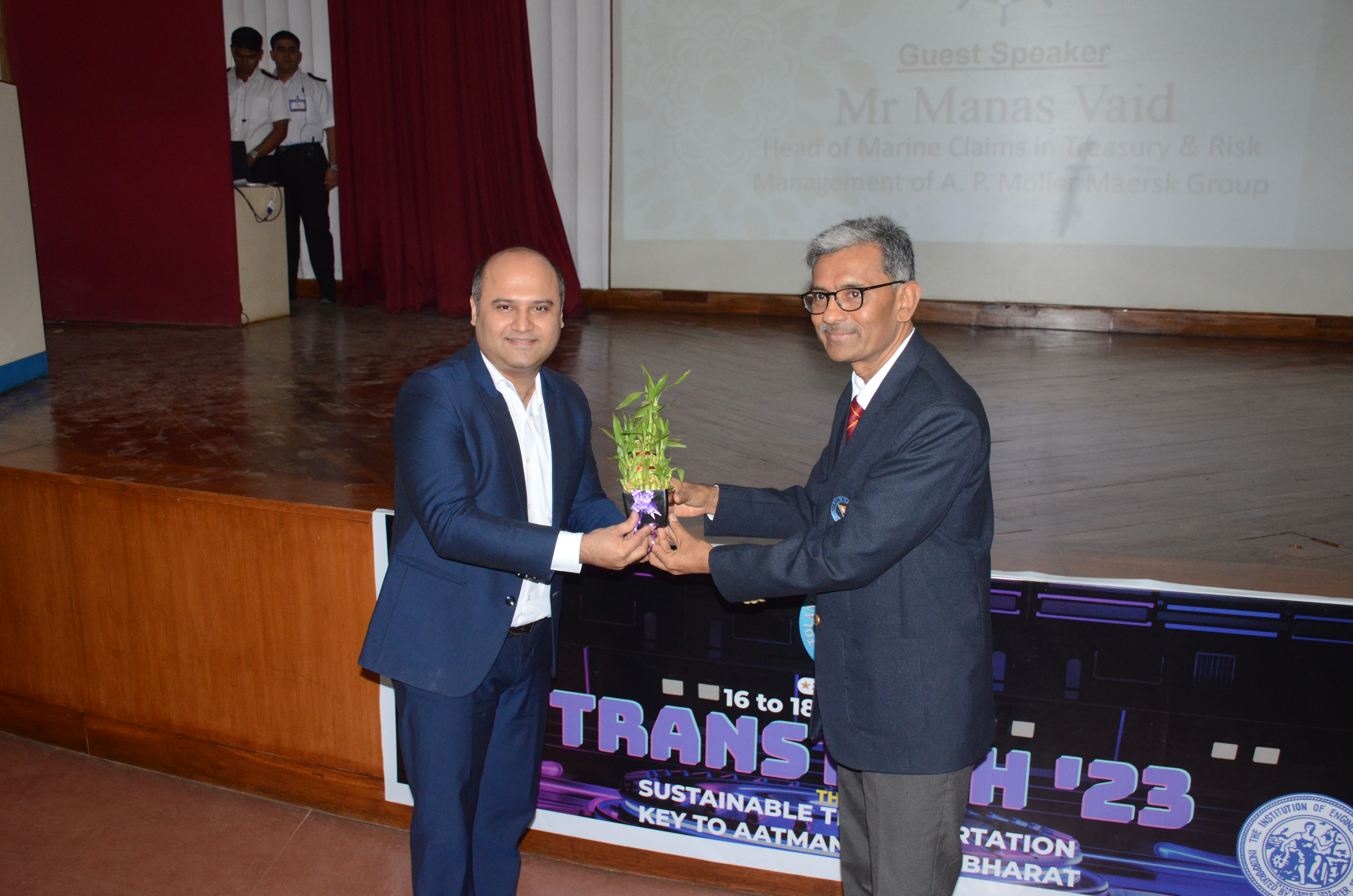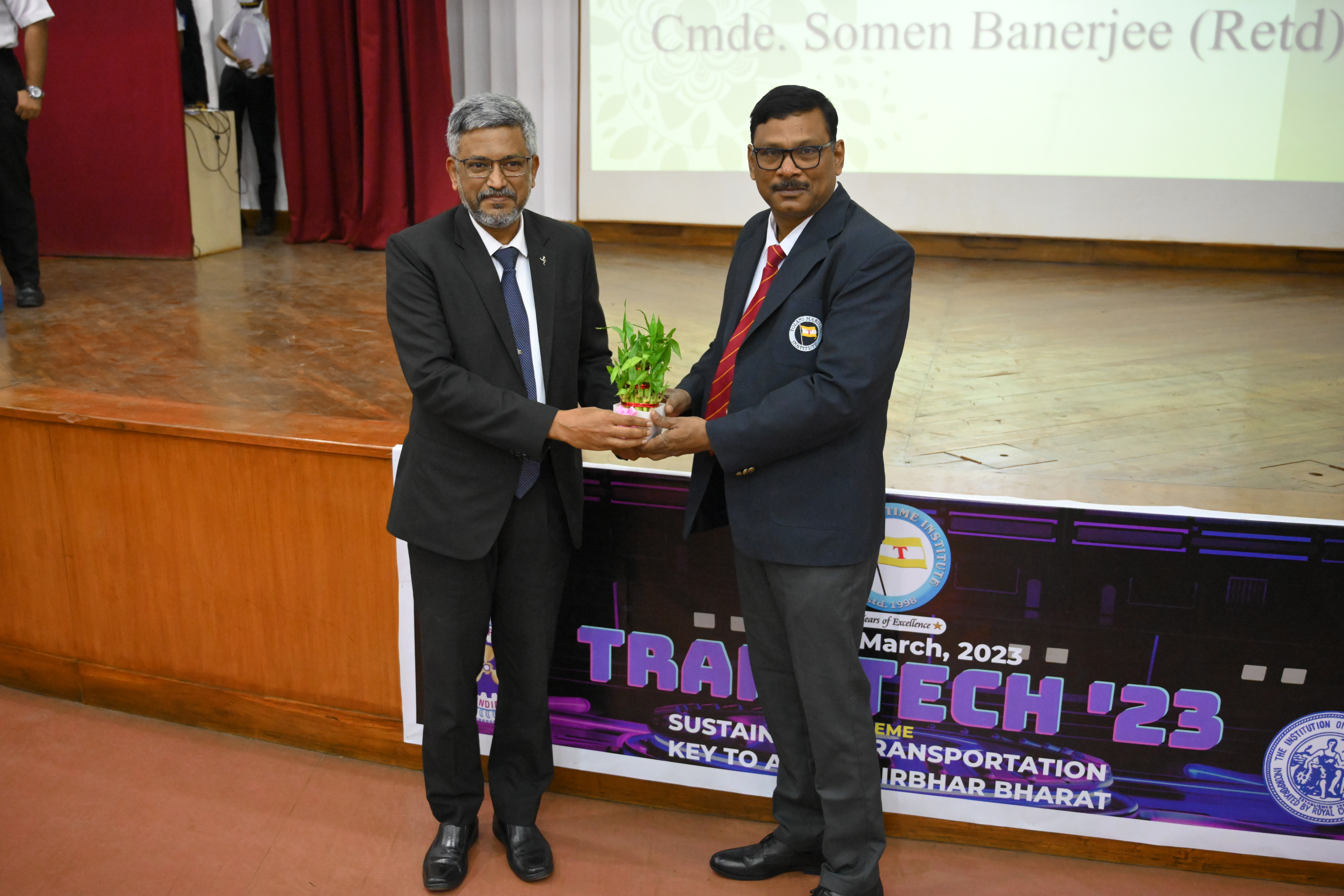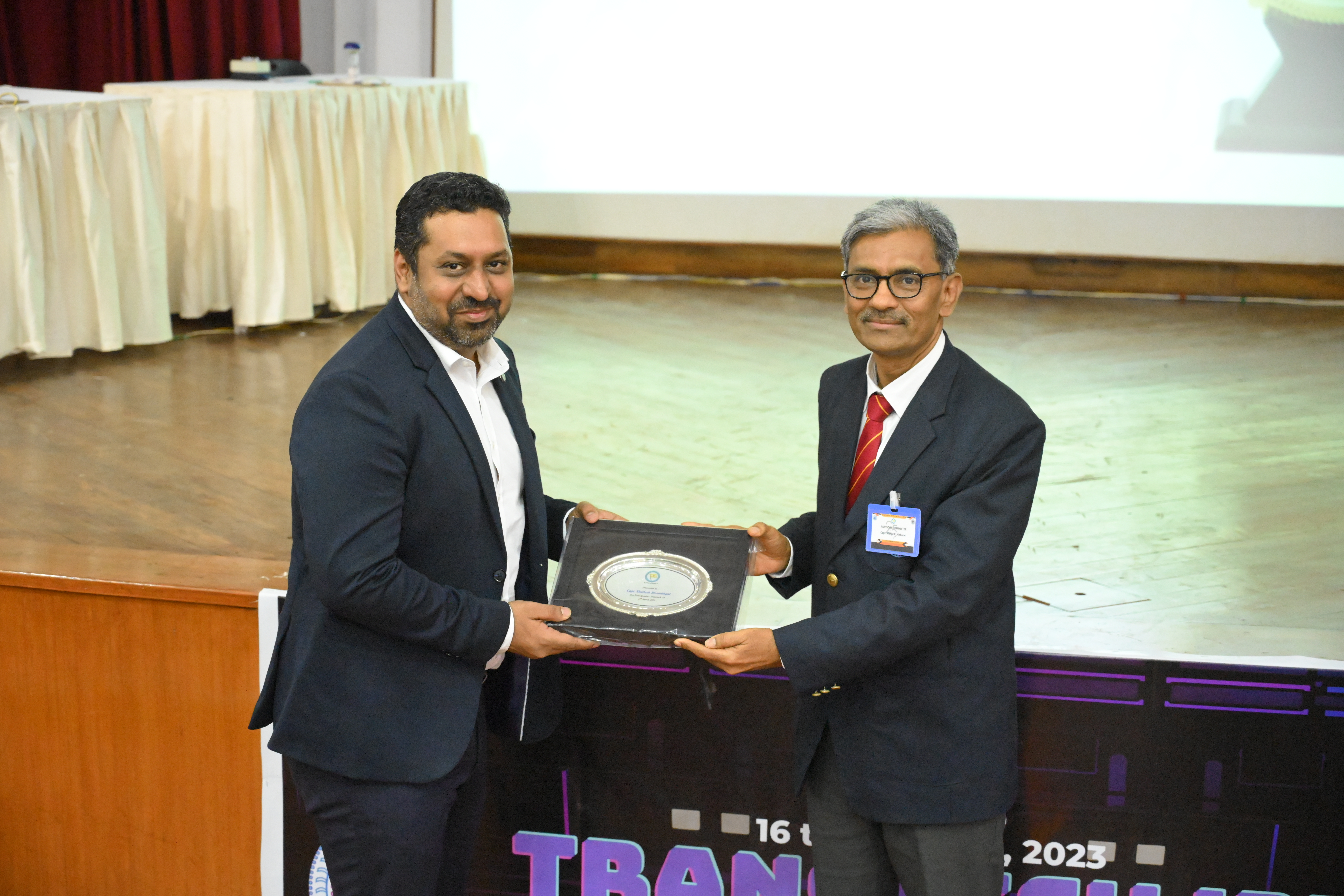 Day 2 of Transtech was full of enthusiasm and energy. The guest speakers of the day were Commodore Somen Banerjee and Mr. Siddharth R Mayur. The Guest Speaker Commodore Somen Banerjee spoke on the topic of "Changing International Order and Distribution of Shipping Trade". Guest speaker Mr. Siddharth R Mayur also spoke on a hot topic of the shipping industry. Both the guest speakers were felicitated by the Principal, Dr. Sanjeet Kanungo and Sr. Vice Principal, Dr. Manoj Kumar Hirkane respectively. The session was concluded with a vote of Thanks by Capt Indranath Banerji, Vice Principal-NS, TMI.