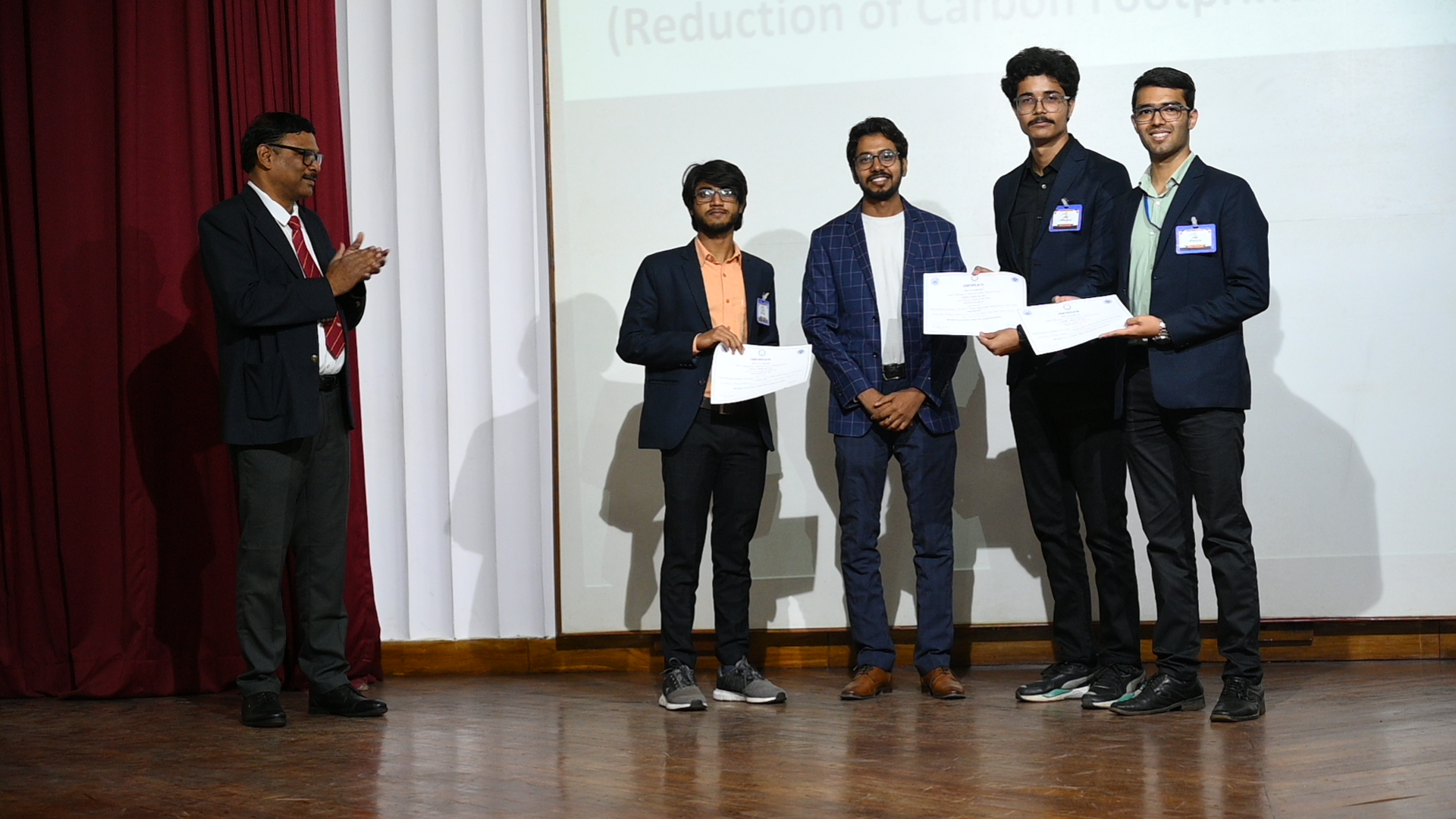 2. For the sub-theme ‘Reduction of Carbon Footprints in Transportation’ – the winners are cadets Mohit Shangari, Badrid Doja, Satwik Dixit from IMU, Visakhapatnam for their paper titled ‘Socio-Econonic Analysis of Blue Fuel’