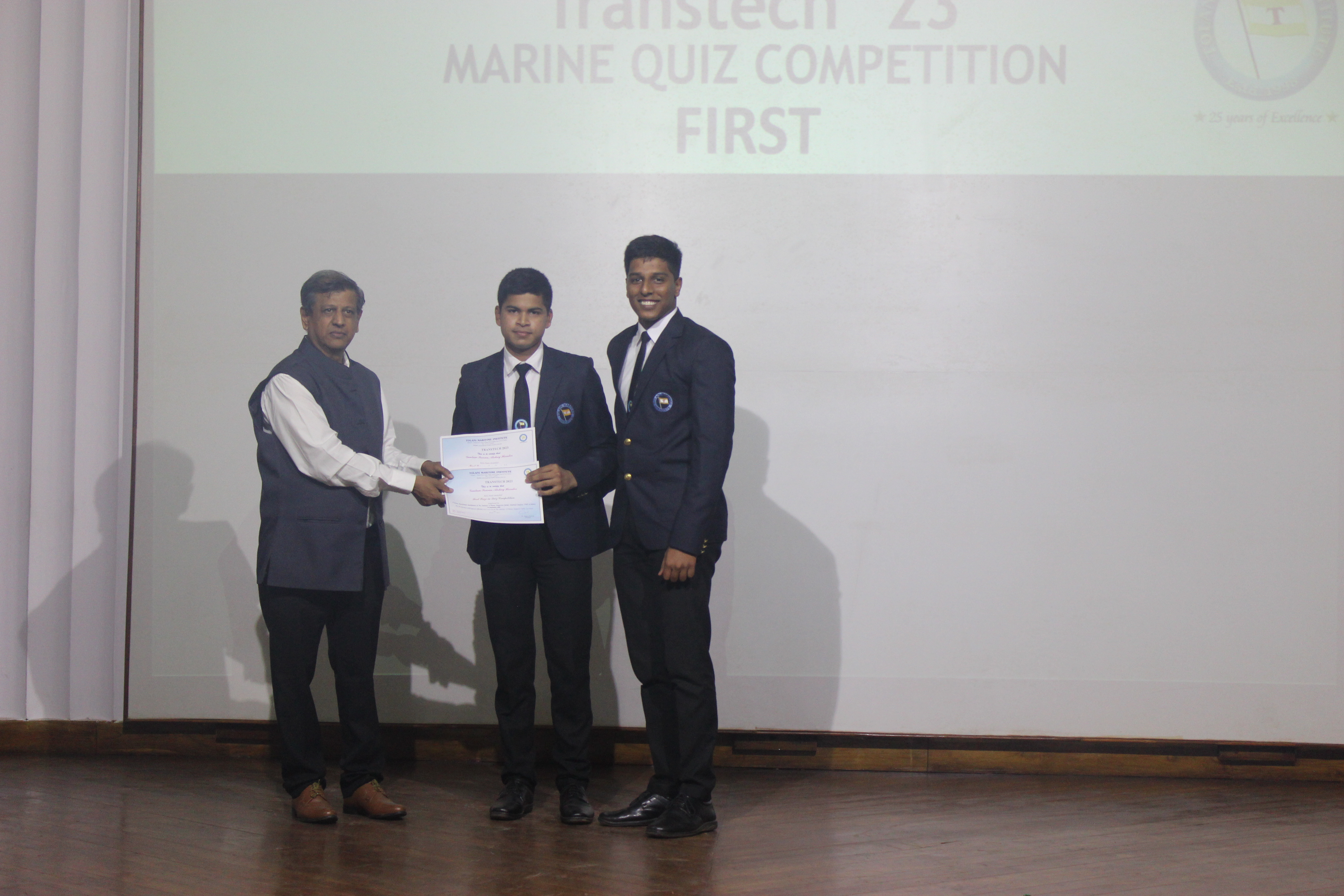 The event was followed by the much-awaited Marine Quiz. The quiz had multiple rounds, which were preceded by an elimination round. The four Teams including, Tolani Maritime Institute, Anglo-Eastern Maritime Academy, Hindustan Institute of Maritime Training and Samudra Institute of Maritime Studies competed with each other with their full potential, skill and knowledge but at the end, the winner of the Marine quiz was declared as Tolani Maritime Institute and day-2 of Transtech was concluded.
