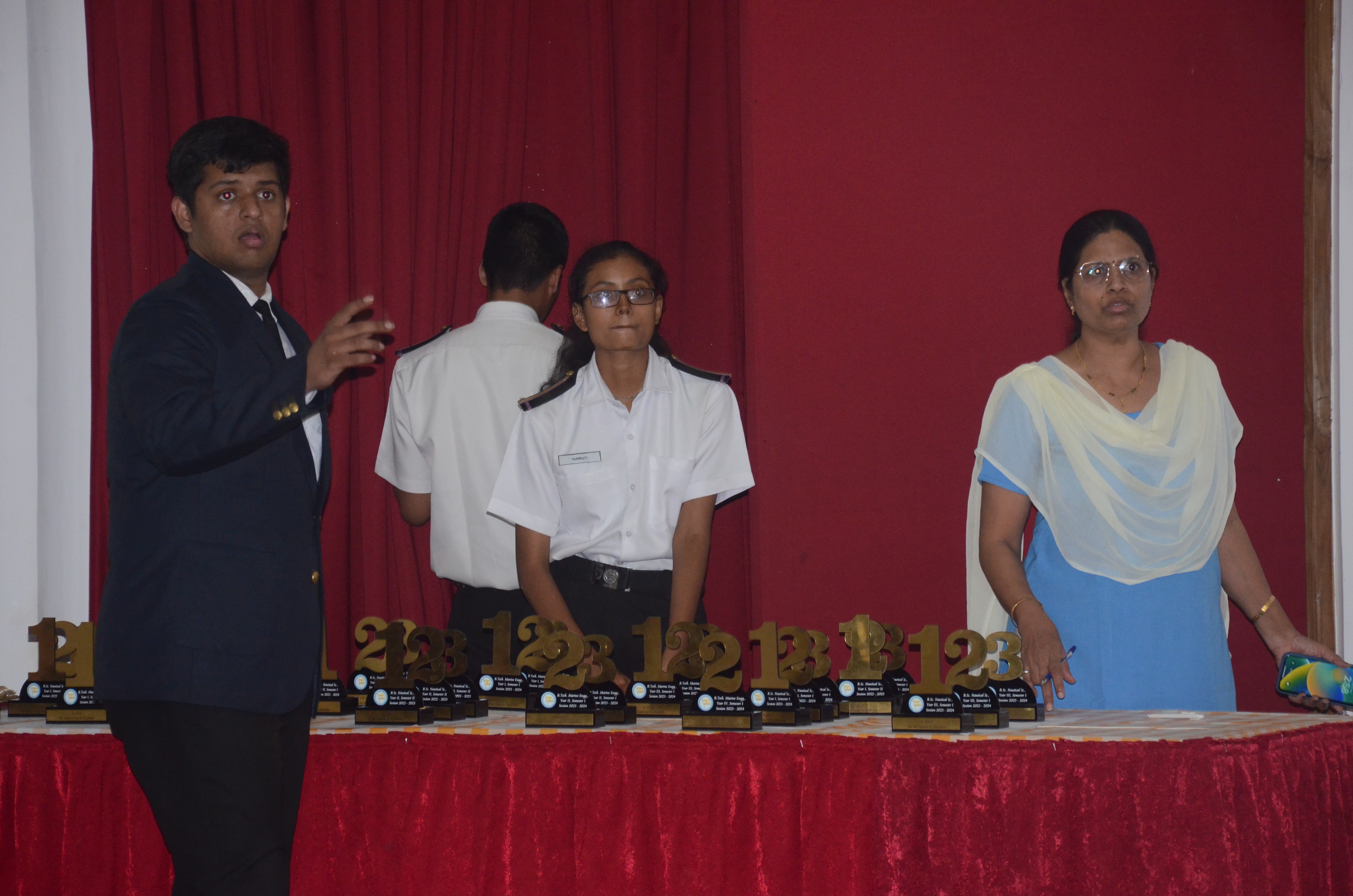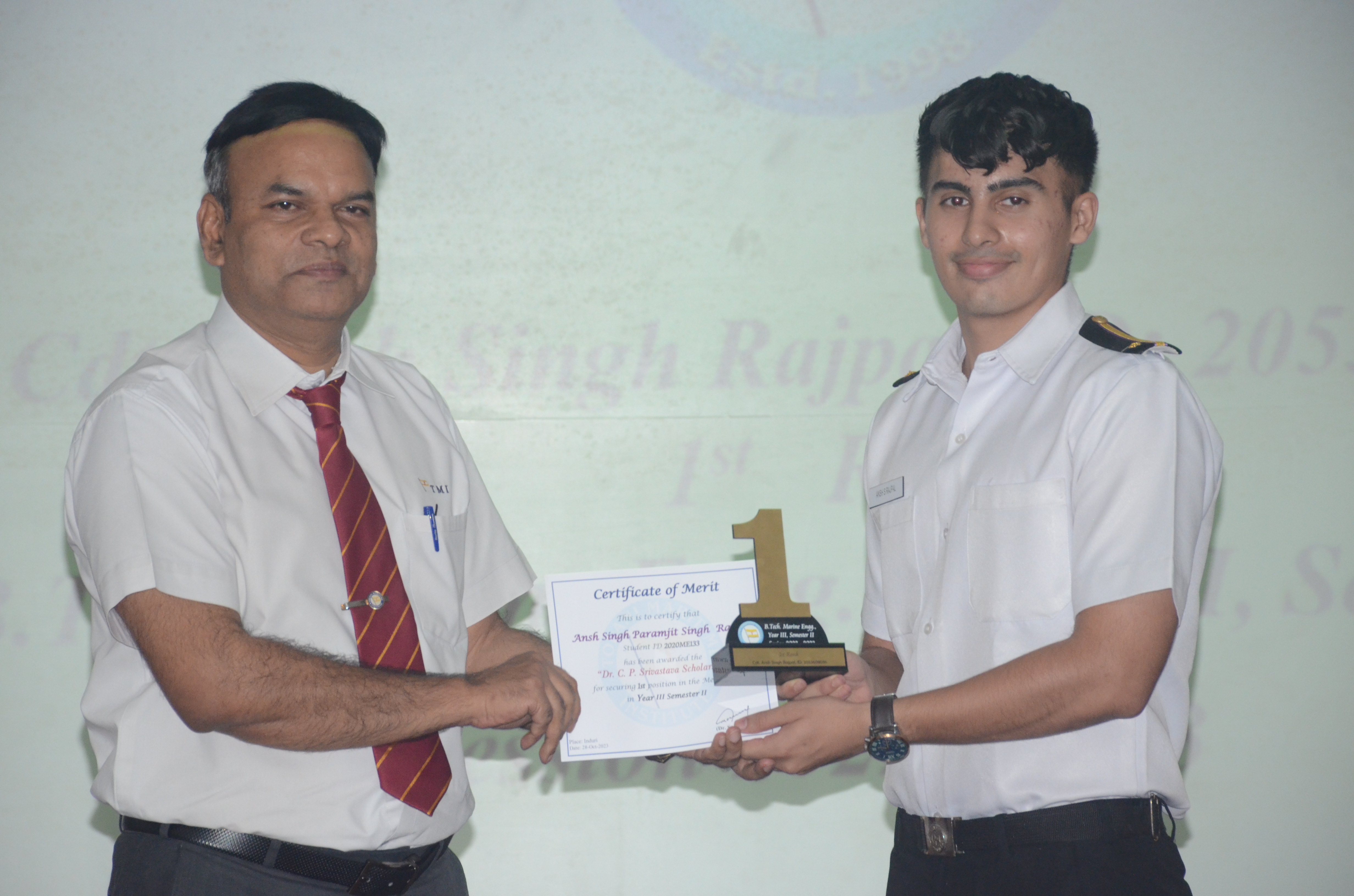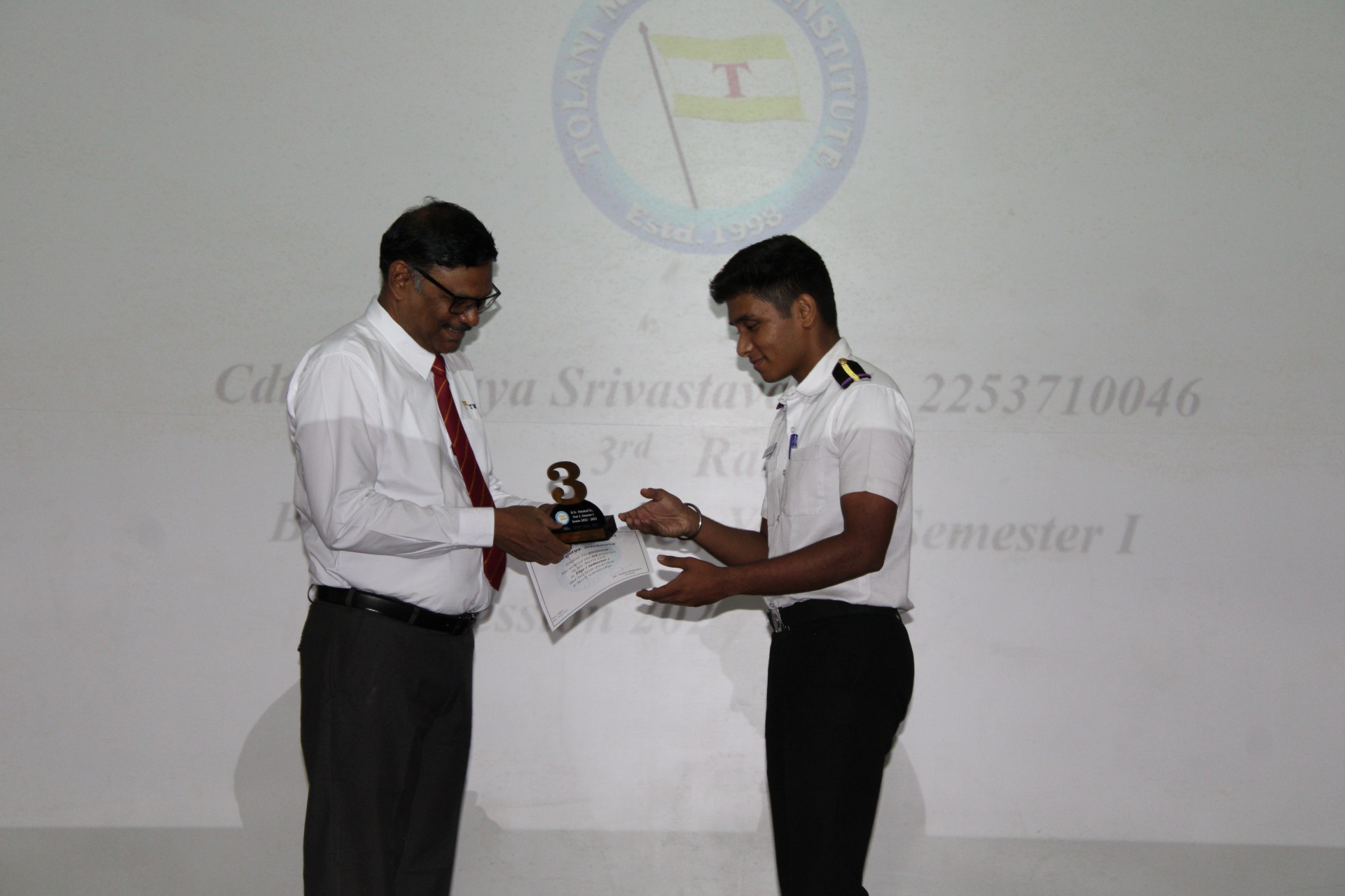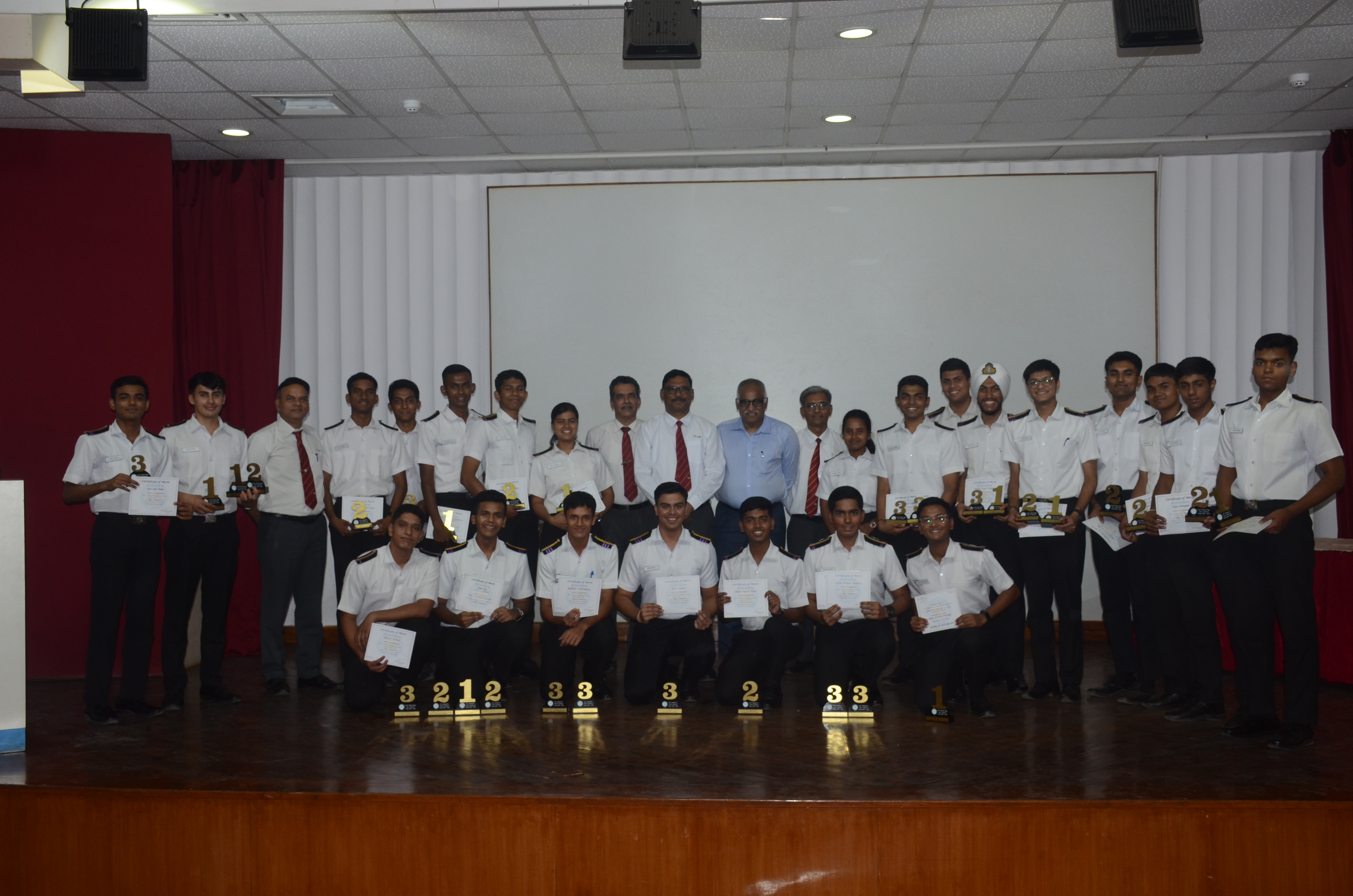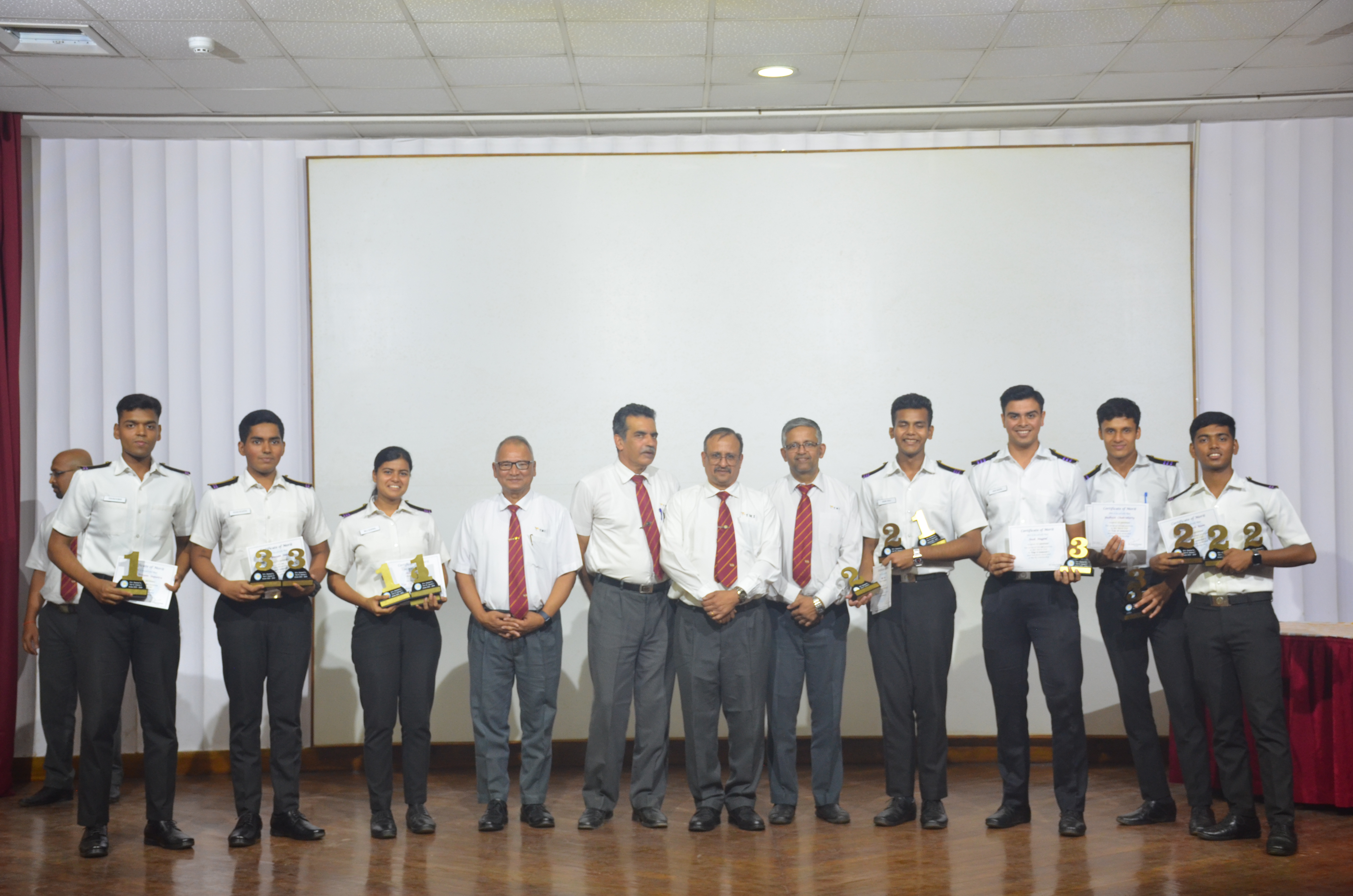 Capt. Albe Zachariah, General Manager of MOL Shipping Company, graced the occasion as the chief guest accompanied by the presence of esteemed TMI faculty members including Principal Dr. Sanjeet Kanungo, Sr. Vice Principal Capt. Manoj Kumar Hirkane, Capt. Indranath Banerji (VPNS), and Mr. Shailendra Kumar (VPME) presented the awards to the cadets and shared motivating words.