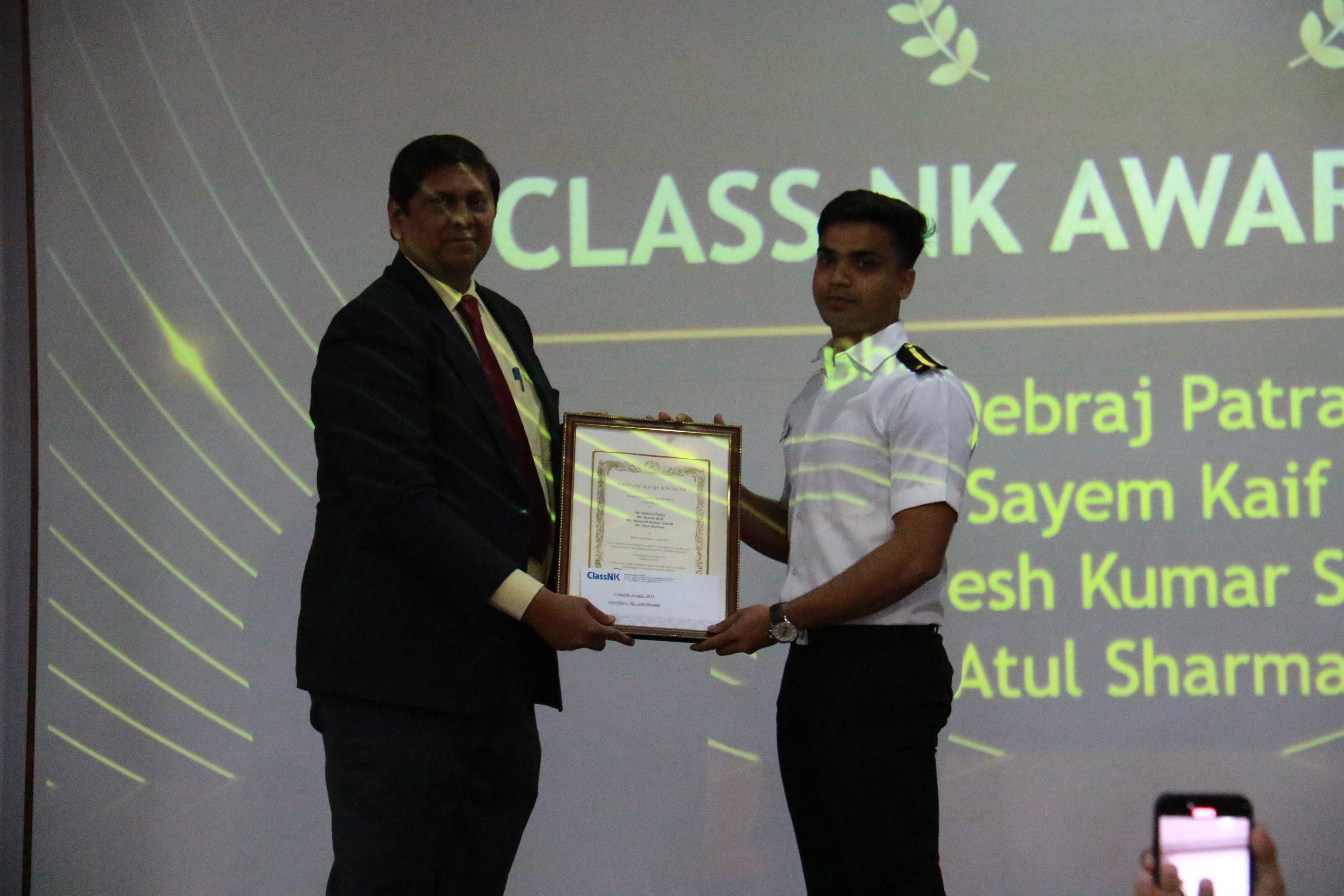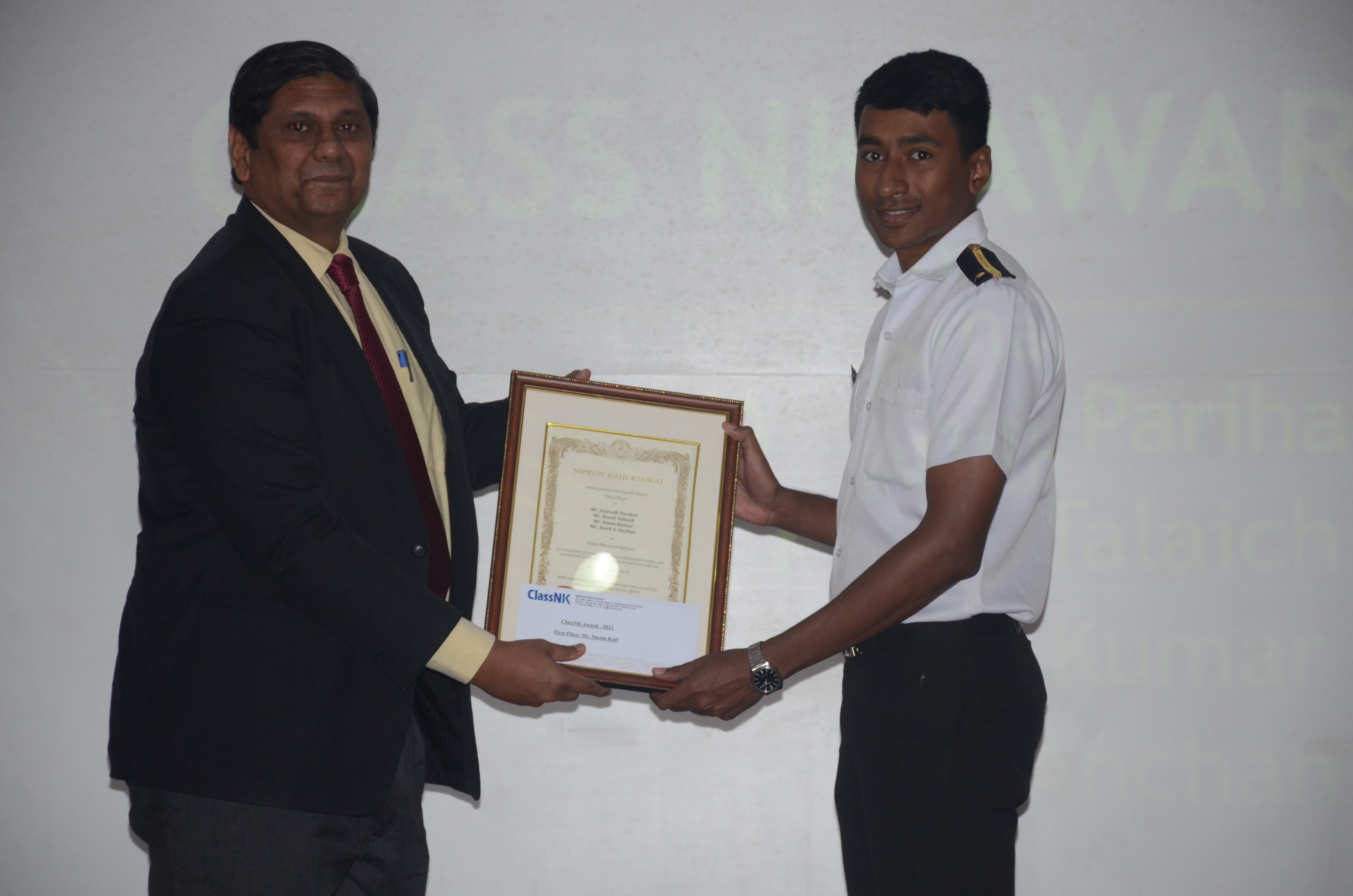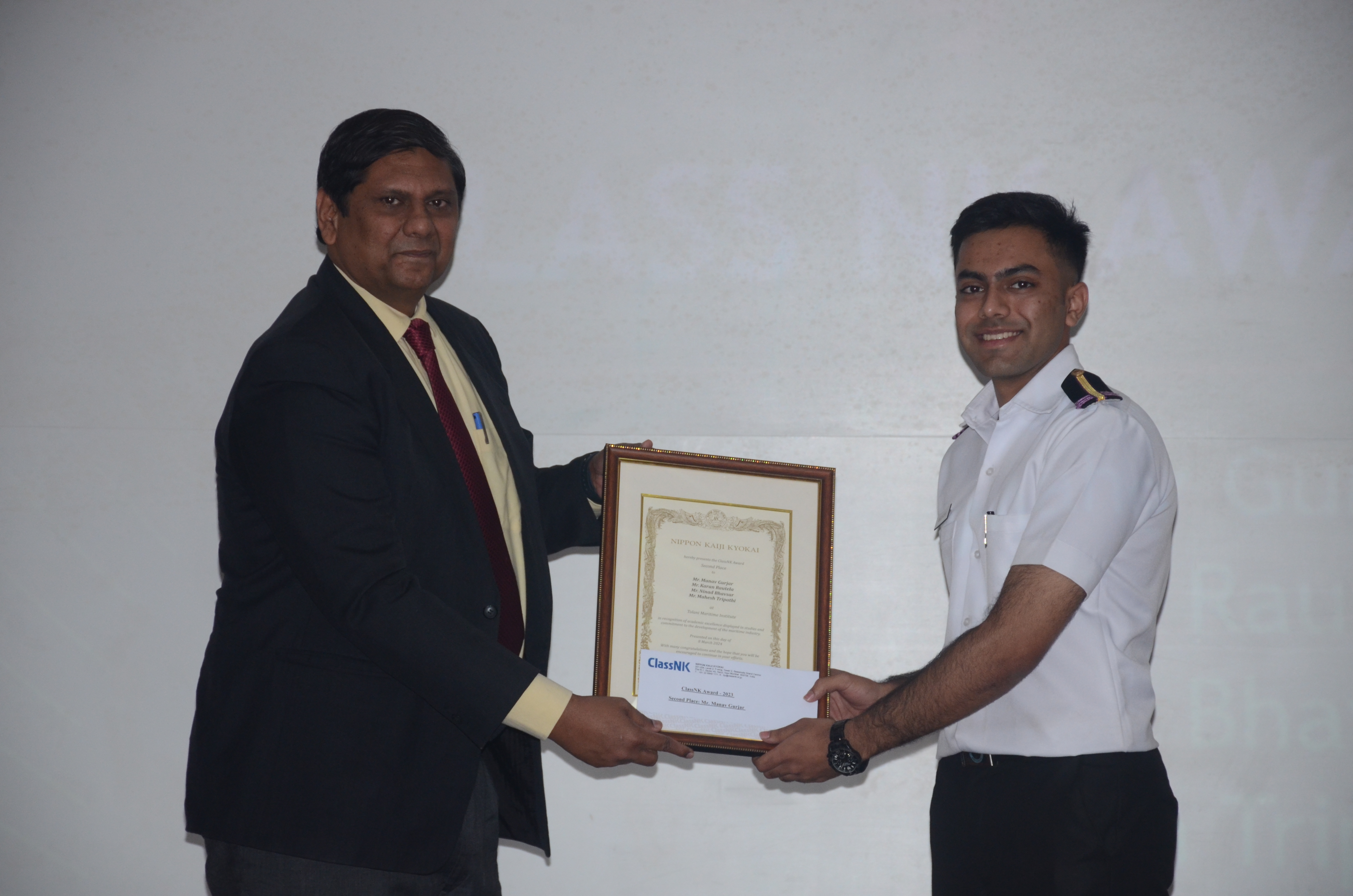 The Chief Guest Mr Shirish C. Deshmukh, Guest Speaker Mr. Koustubh Phalnikar, and Mr. Sumithran Sampath, General Manager Class NK-Mumbai shared insights on new ideas and technologies, emphasizing the importance of perseverance and dedication in achieving goals."