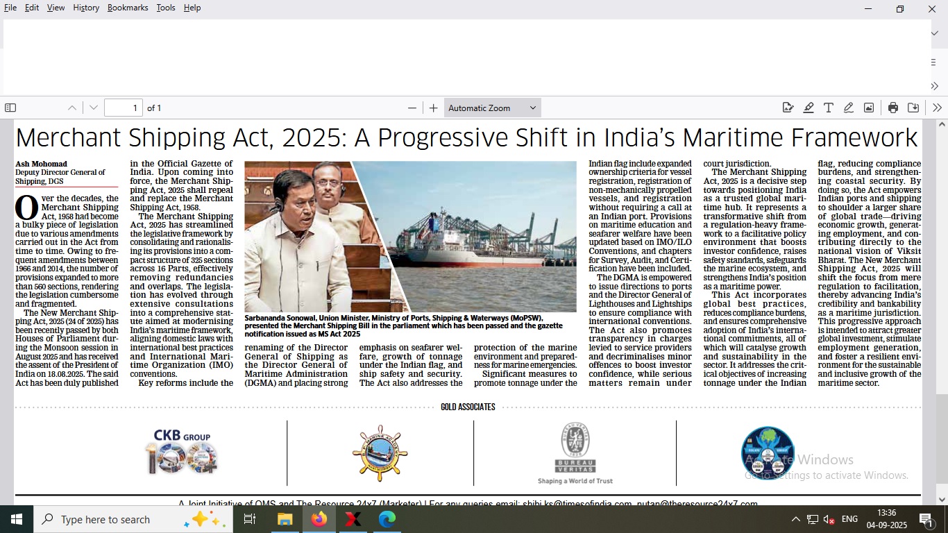 DG Shipping News Suppliment In TOI