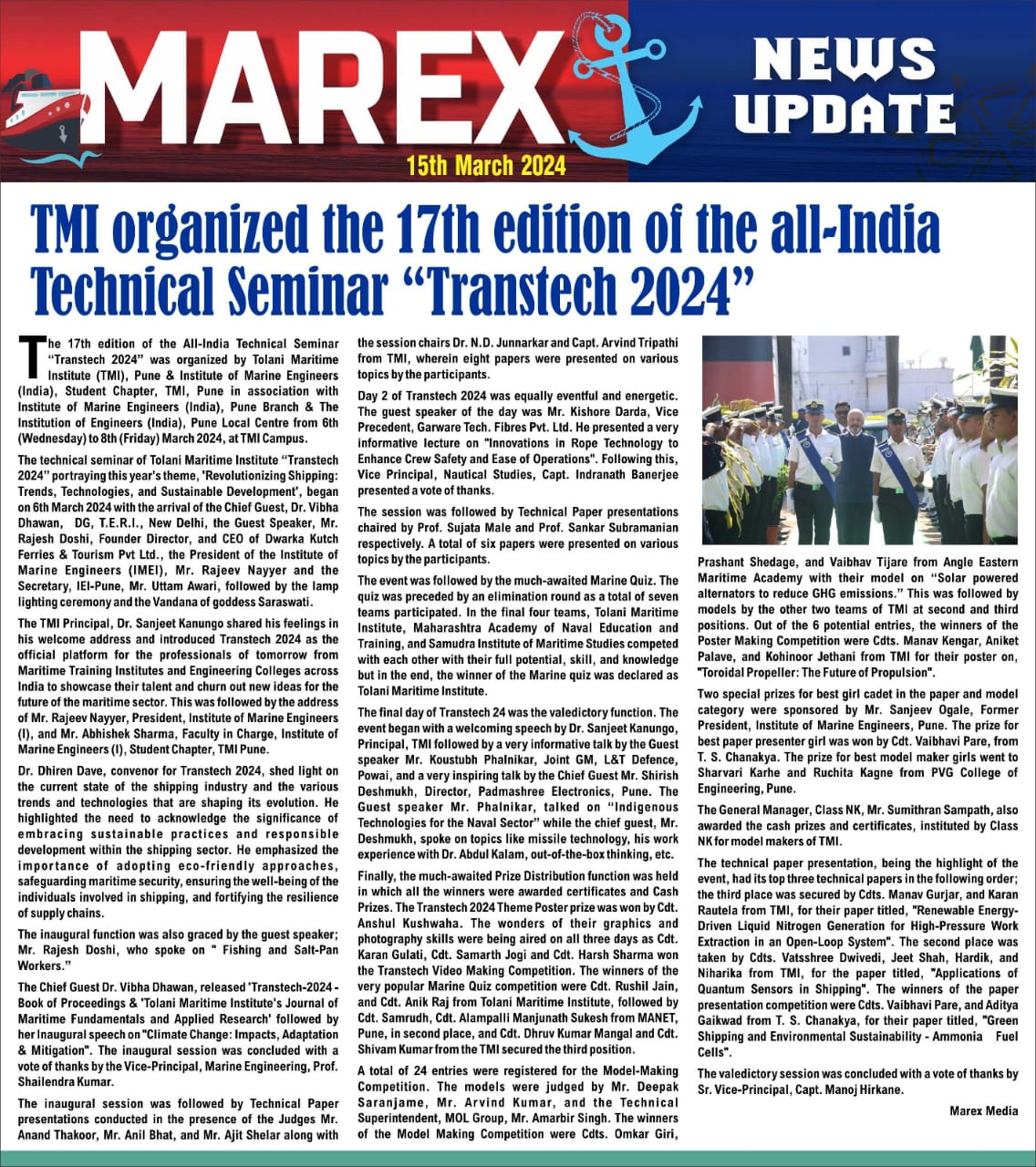 TOLANI MARITIME INSTITUTE TRANSTECH 24 NEWS